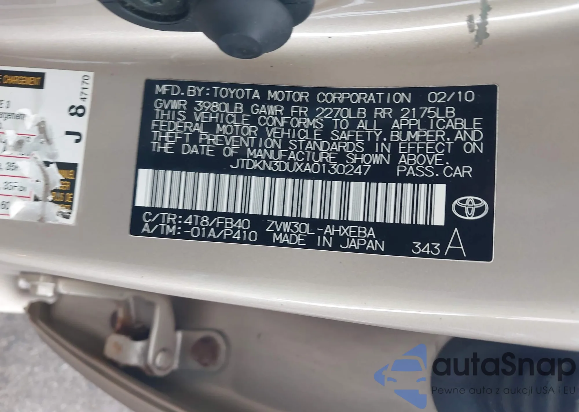 • VIN JTDKN3DUXA0130247