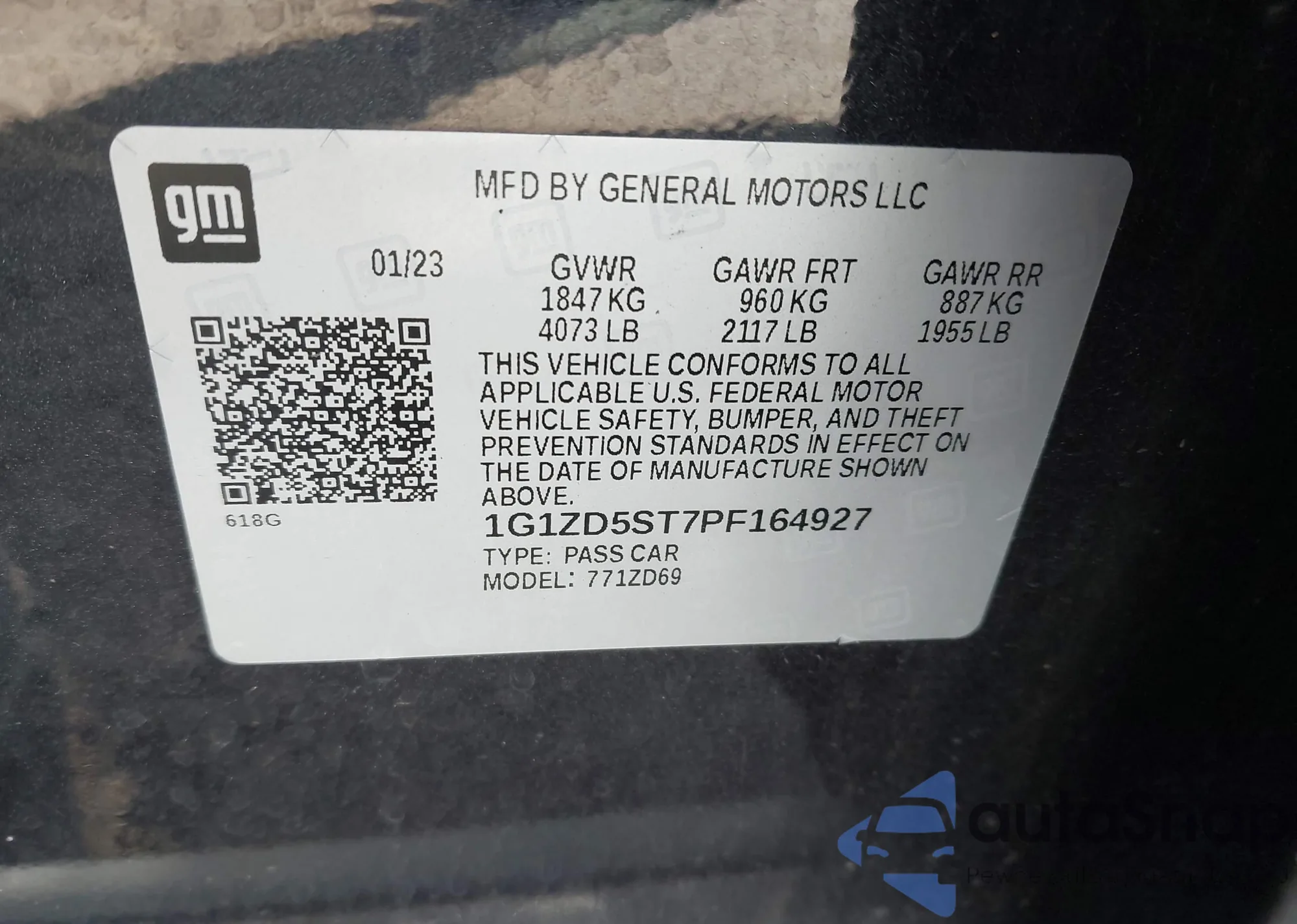 • VIN 1G1ZD5ST7PF164927