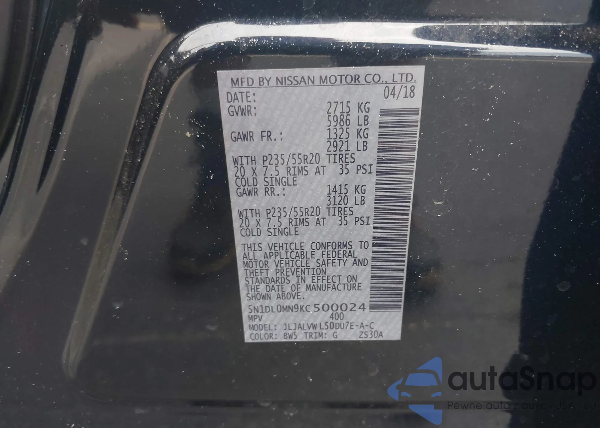 • VIN 5N1DL0MN9KC500024