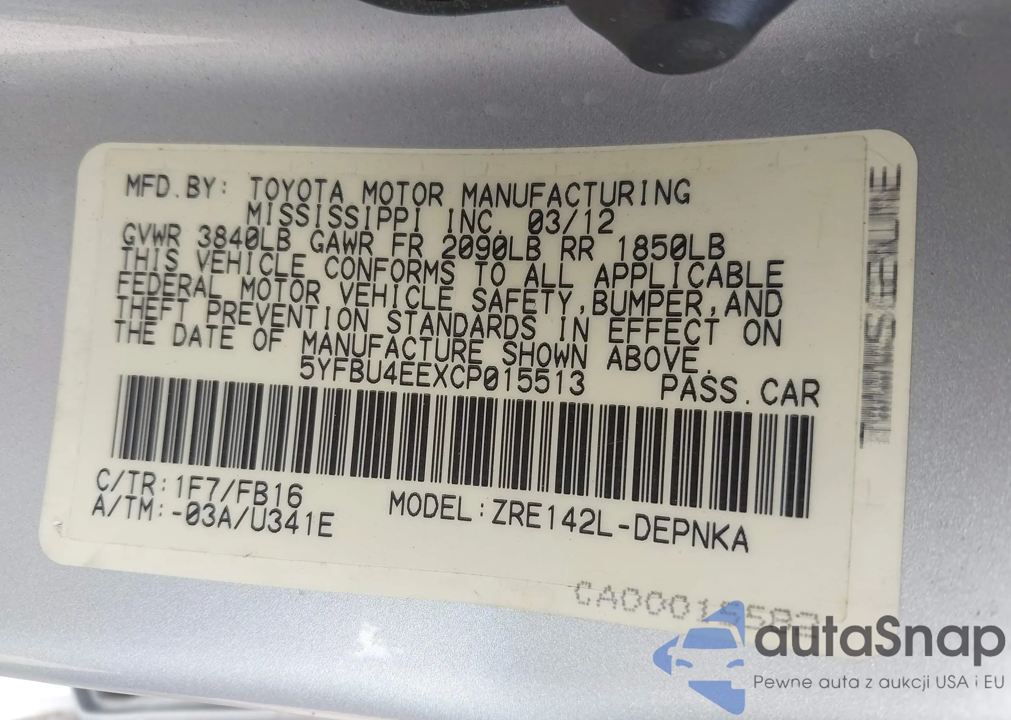 • VIN 5YFBU4EEXCP015513