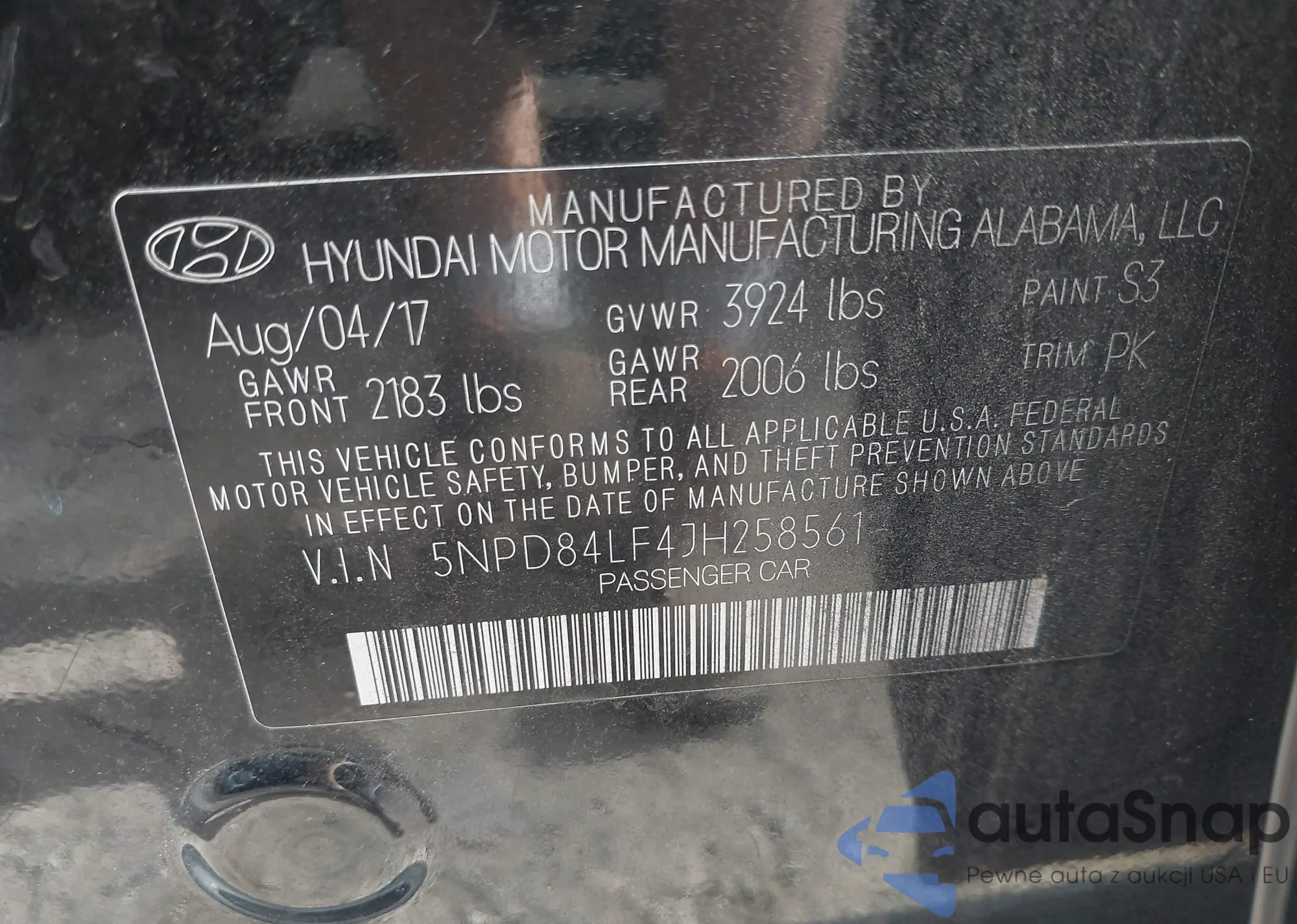 • VIN 5NPD84LF4JH258561