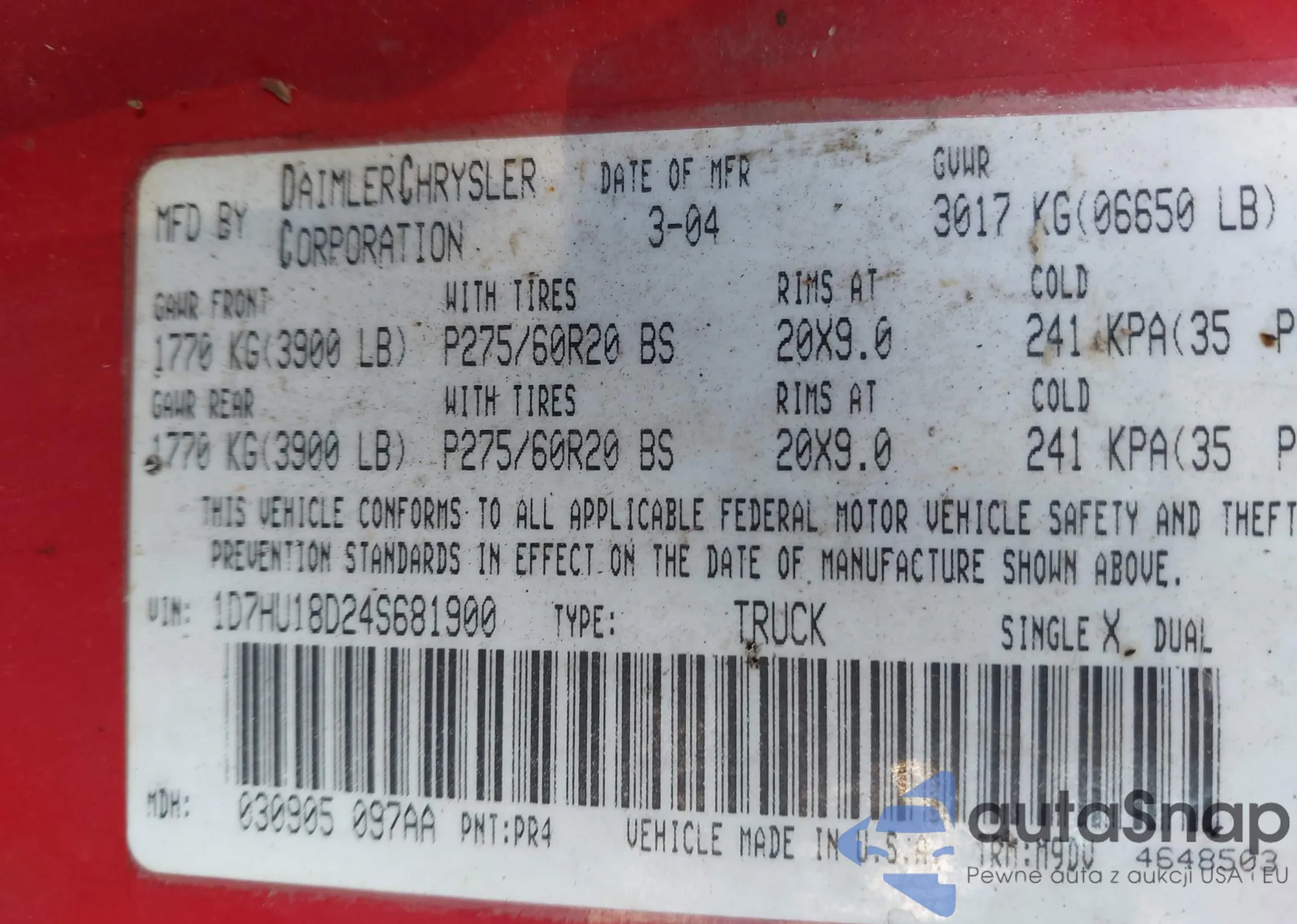 • VIN 1GCCS19Z6P0172753