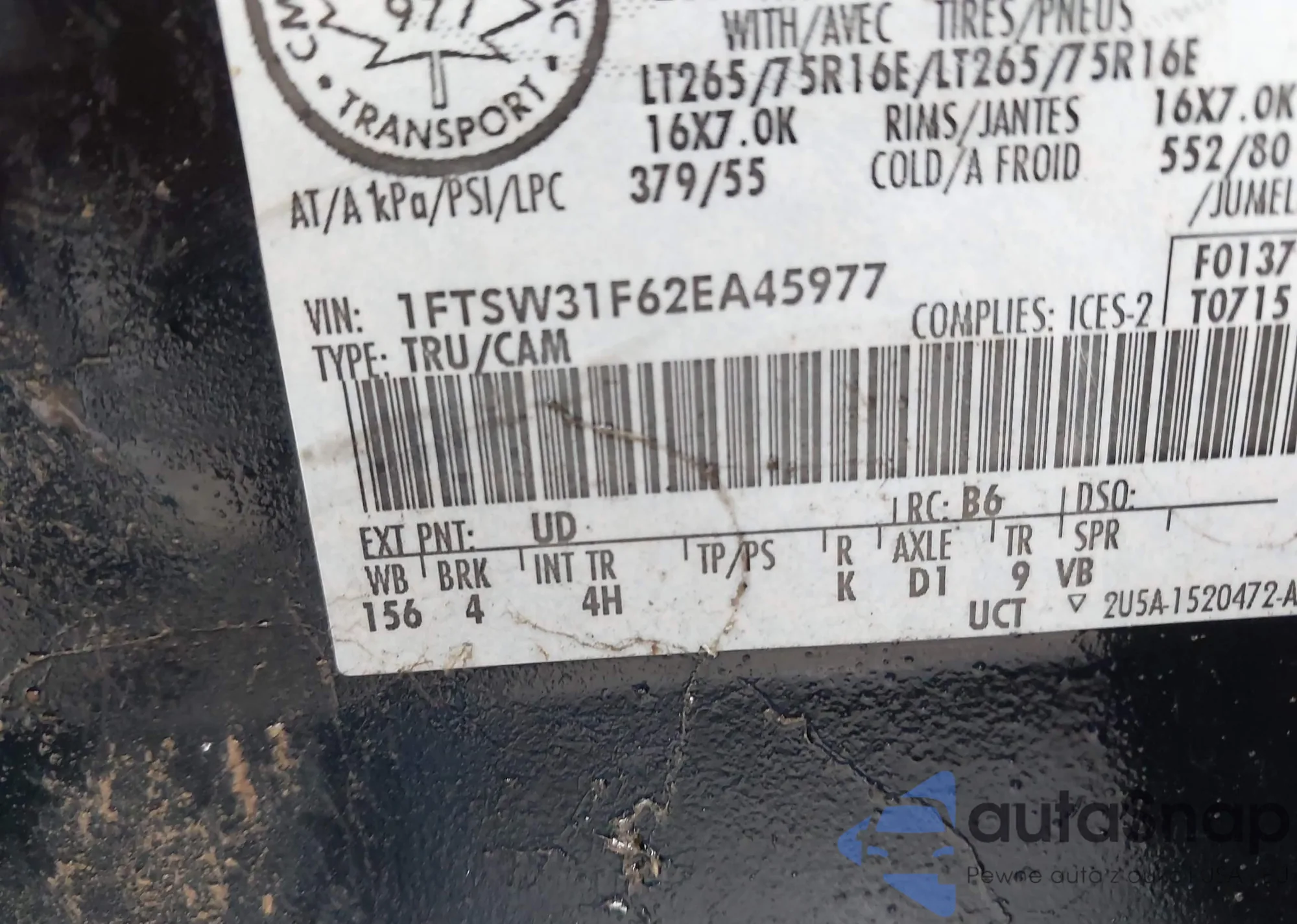 • VIN 1FTSW31F62EA45977