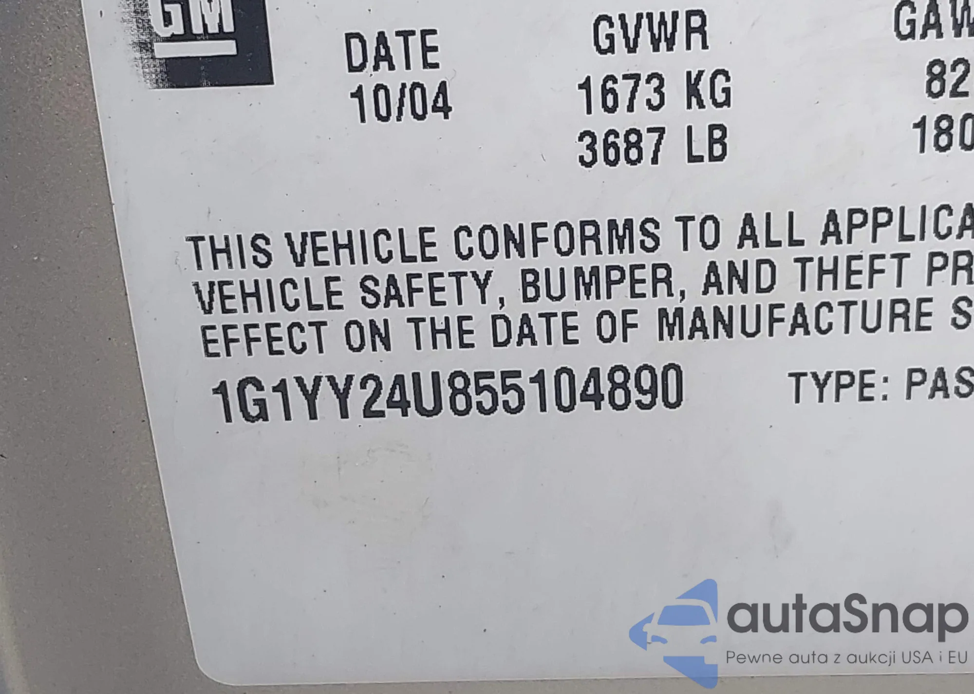 • VIN 1G1YY24U855104890