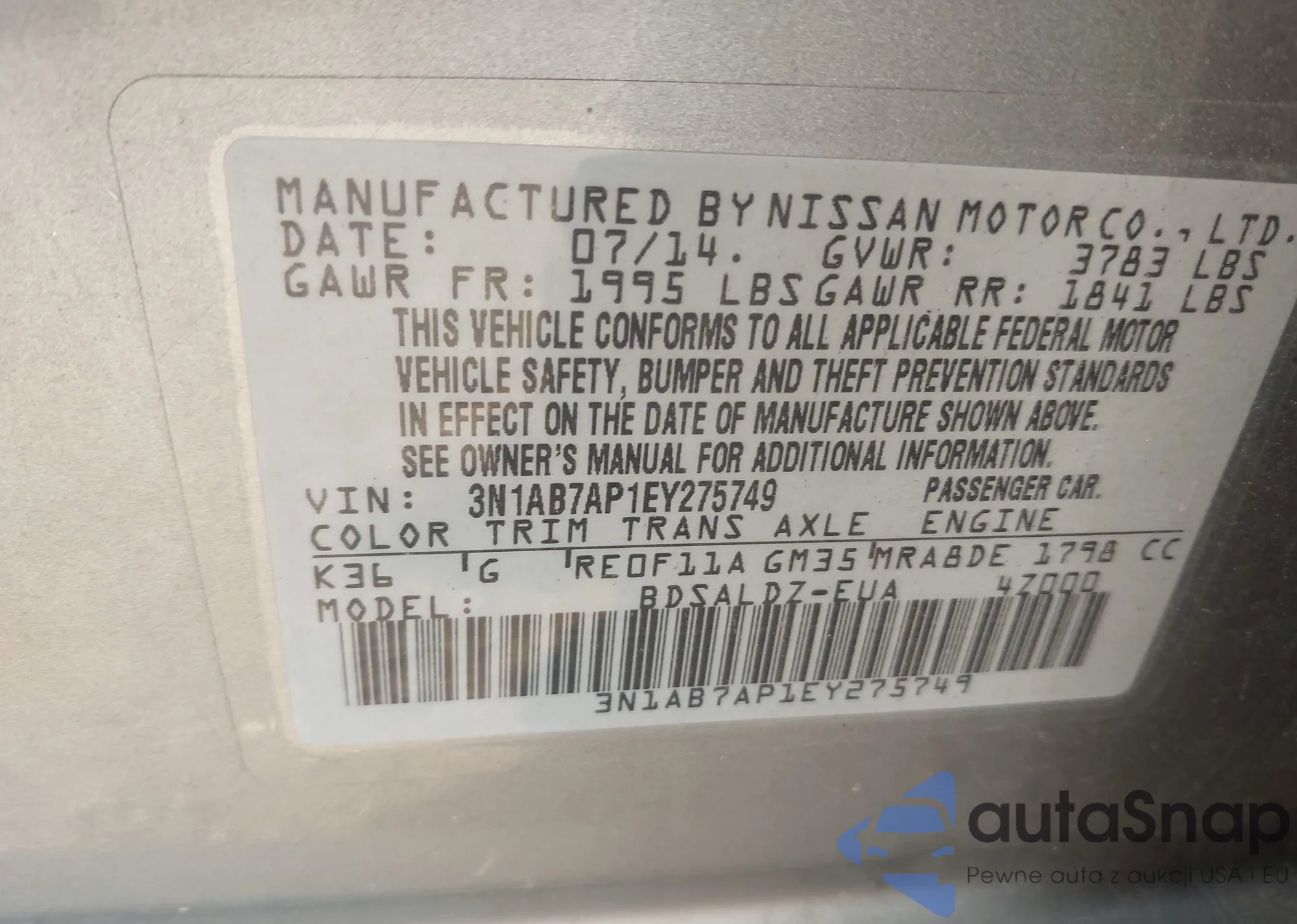 • VIN 3N1AB7AP1EY275749