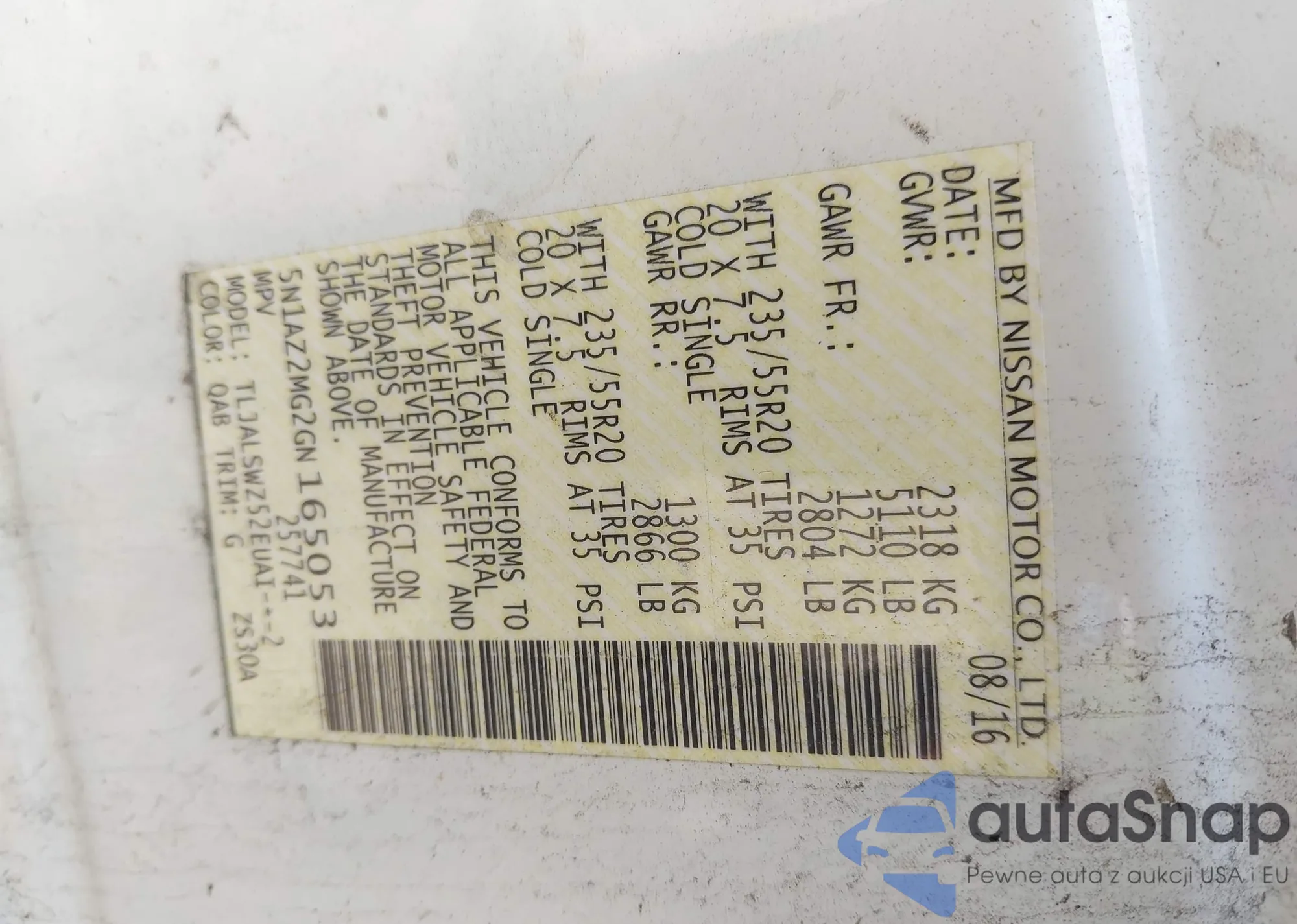 LOT: 43151485 VIN: 2T3ZFREV0JW511221