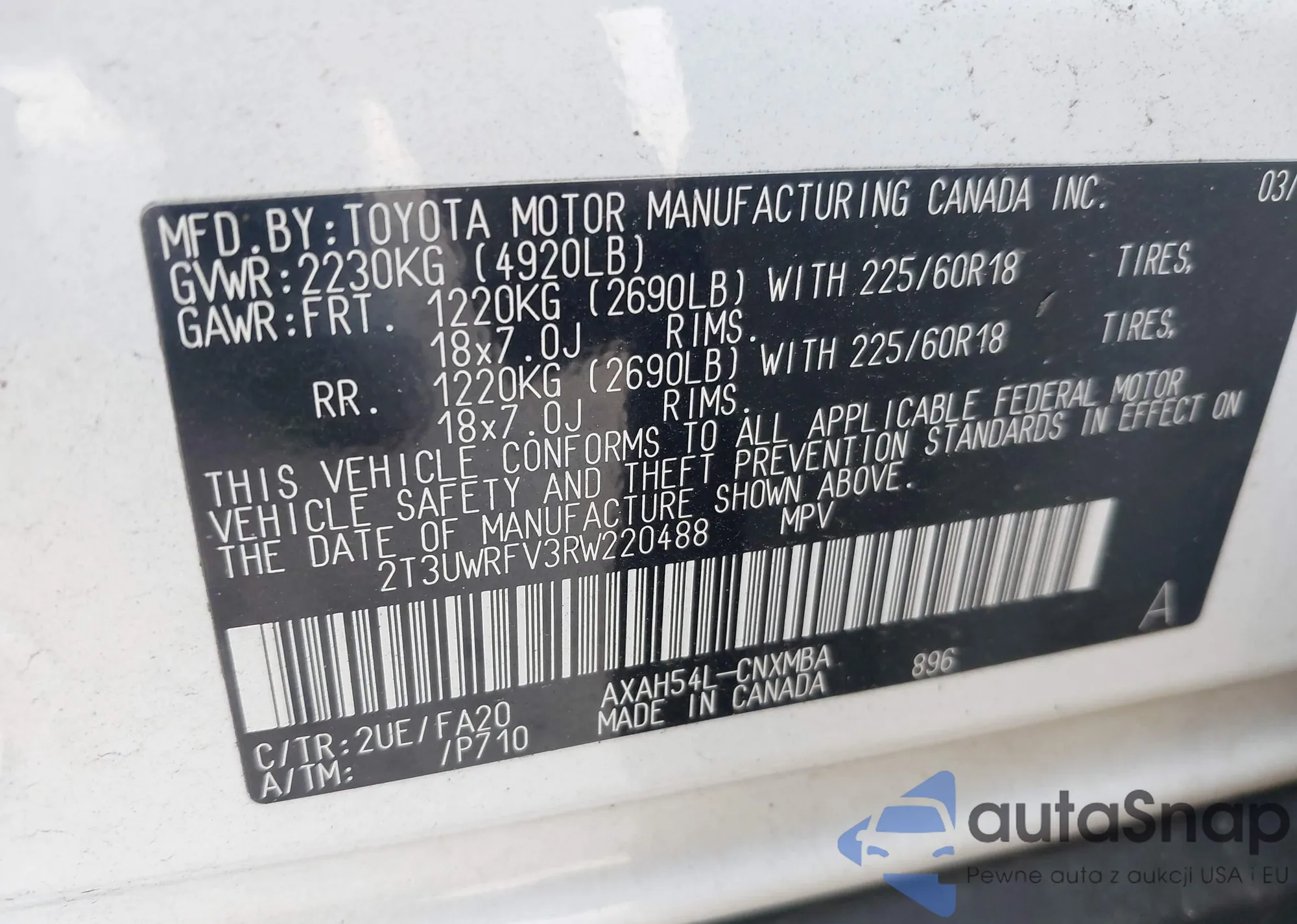 • VIN 2T3UWRFV3RW220488