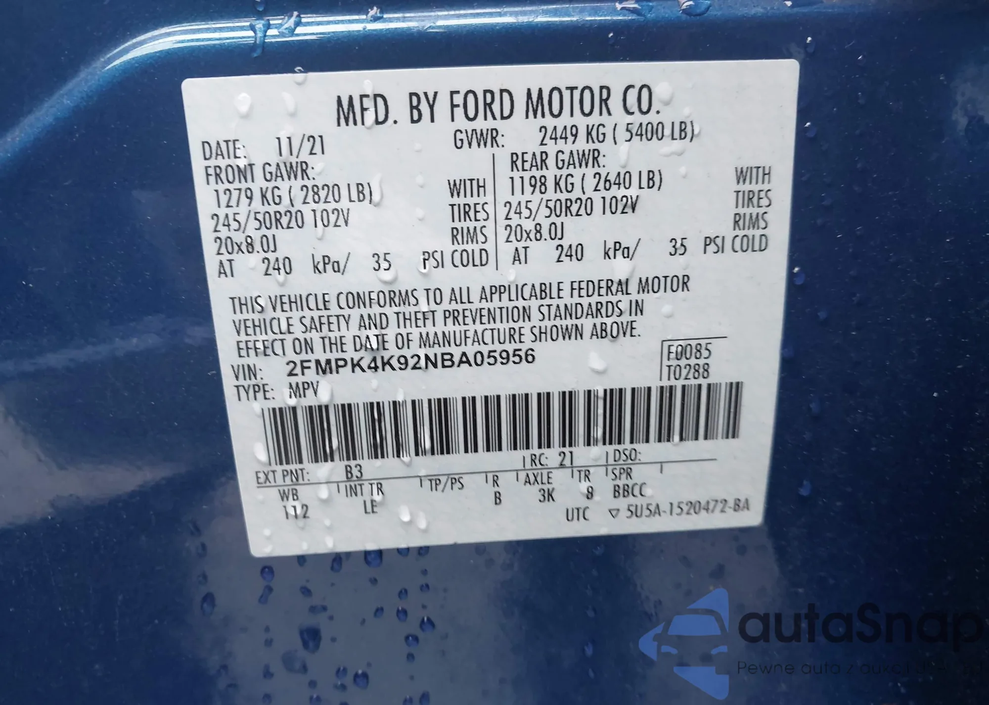 • VIN 2FMPK4K92NBA05956