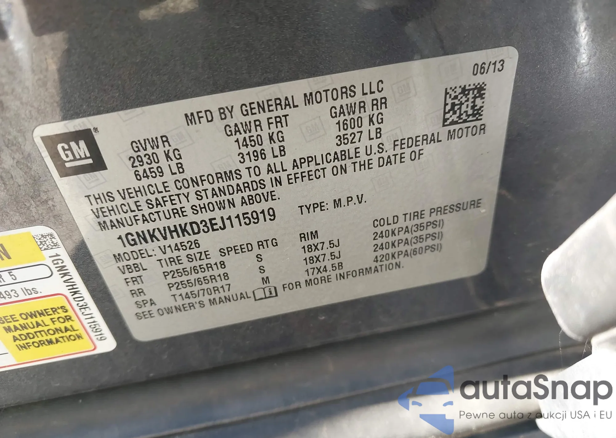 • VIN 1GNKVHKD3EJ115919