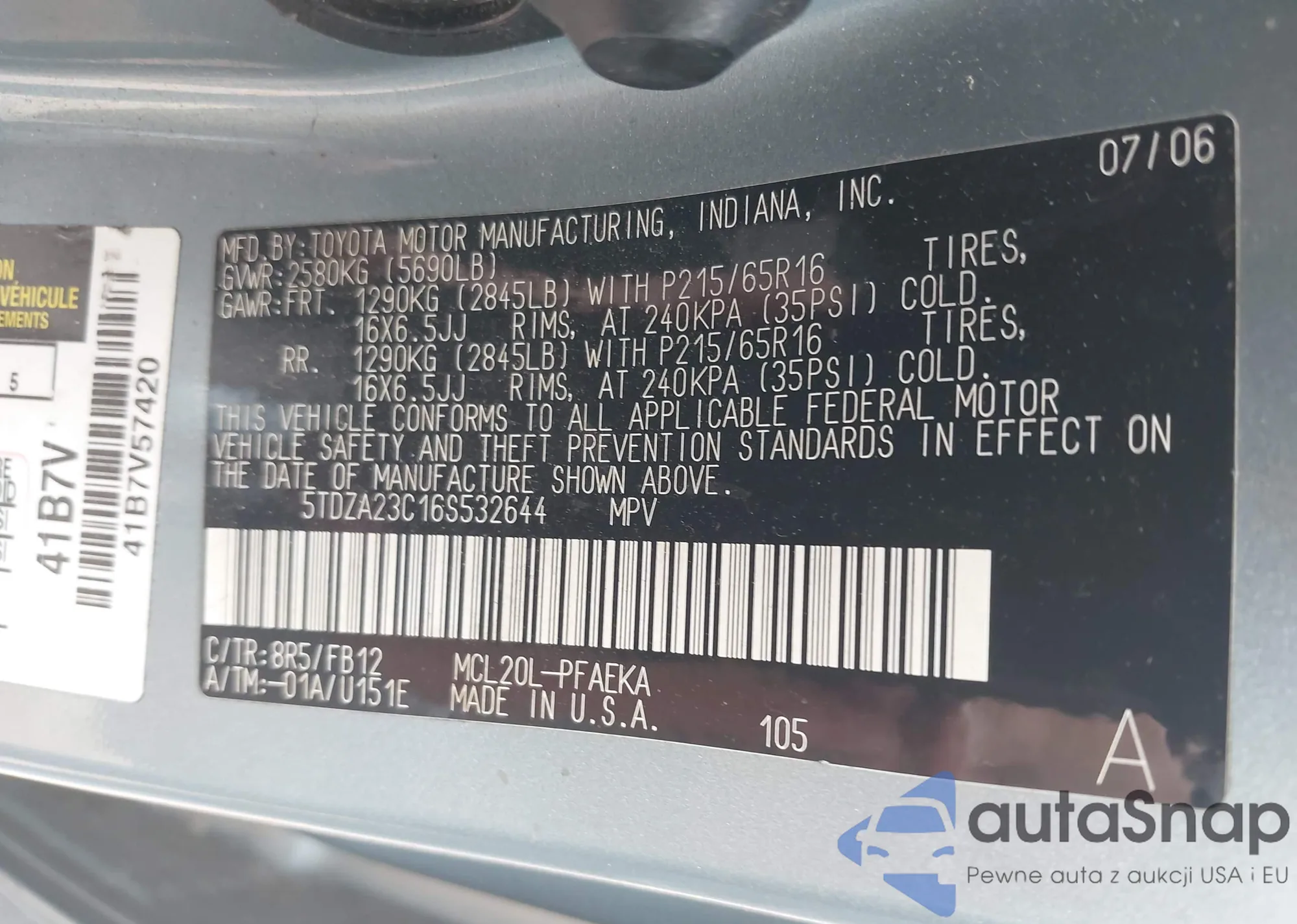 • VIN 5TDZA23C16S532644