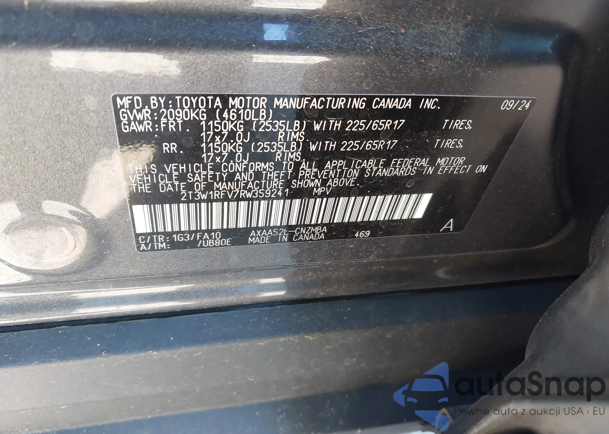 LOT: 42182321 VIN: 2T3W1RFV7RW359241