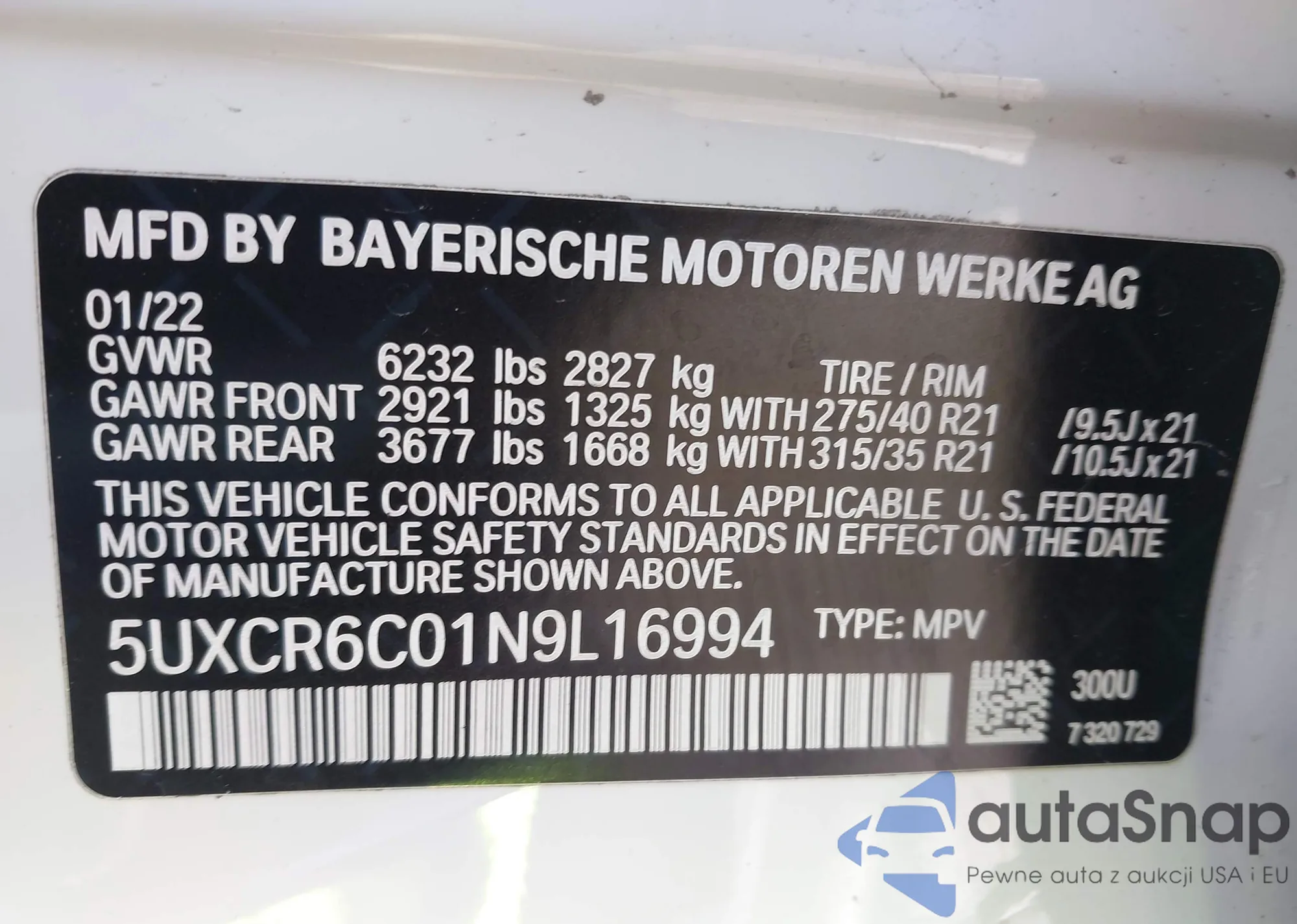 • VIN 5UXCR6C01N9L16994