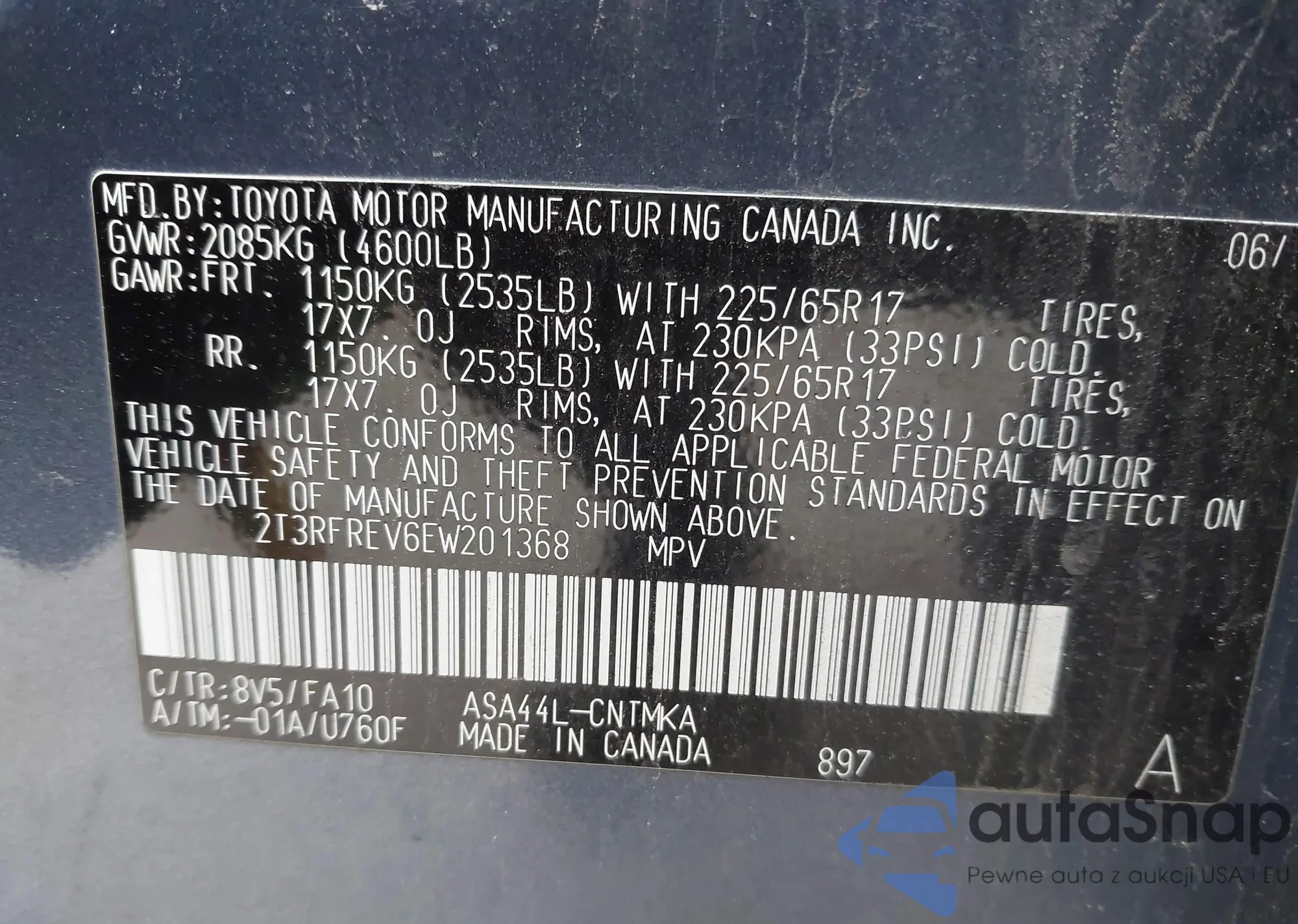 • VIN 2T3RFREV6EW201368