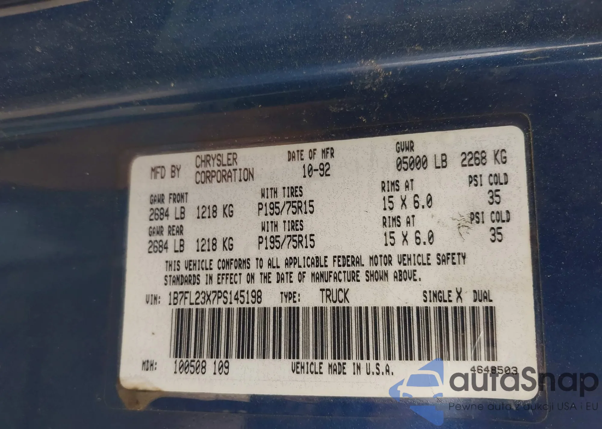 • VIN 1C4HJXDG9NW169034