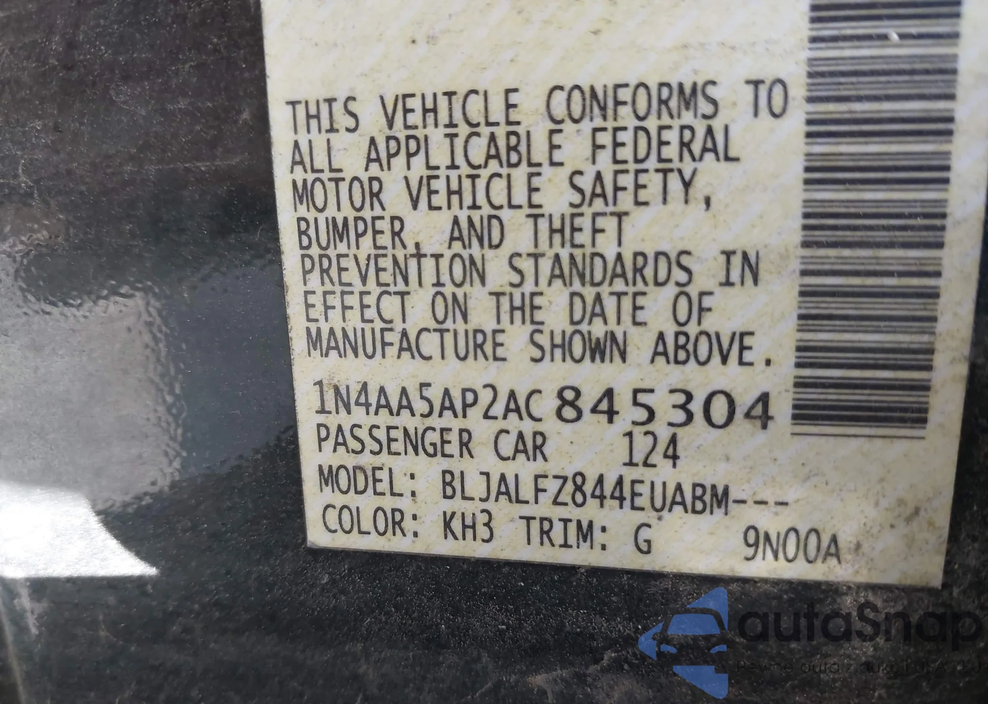 • VIN 1N4AA5AP2AC845304