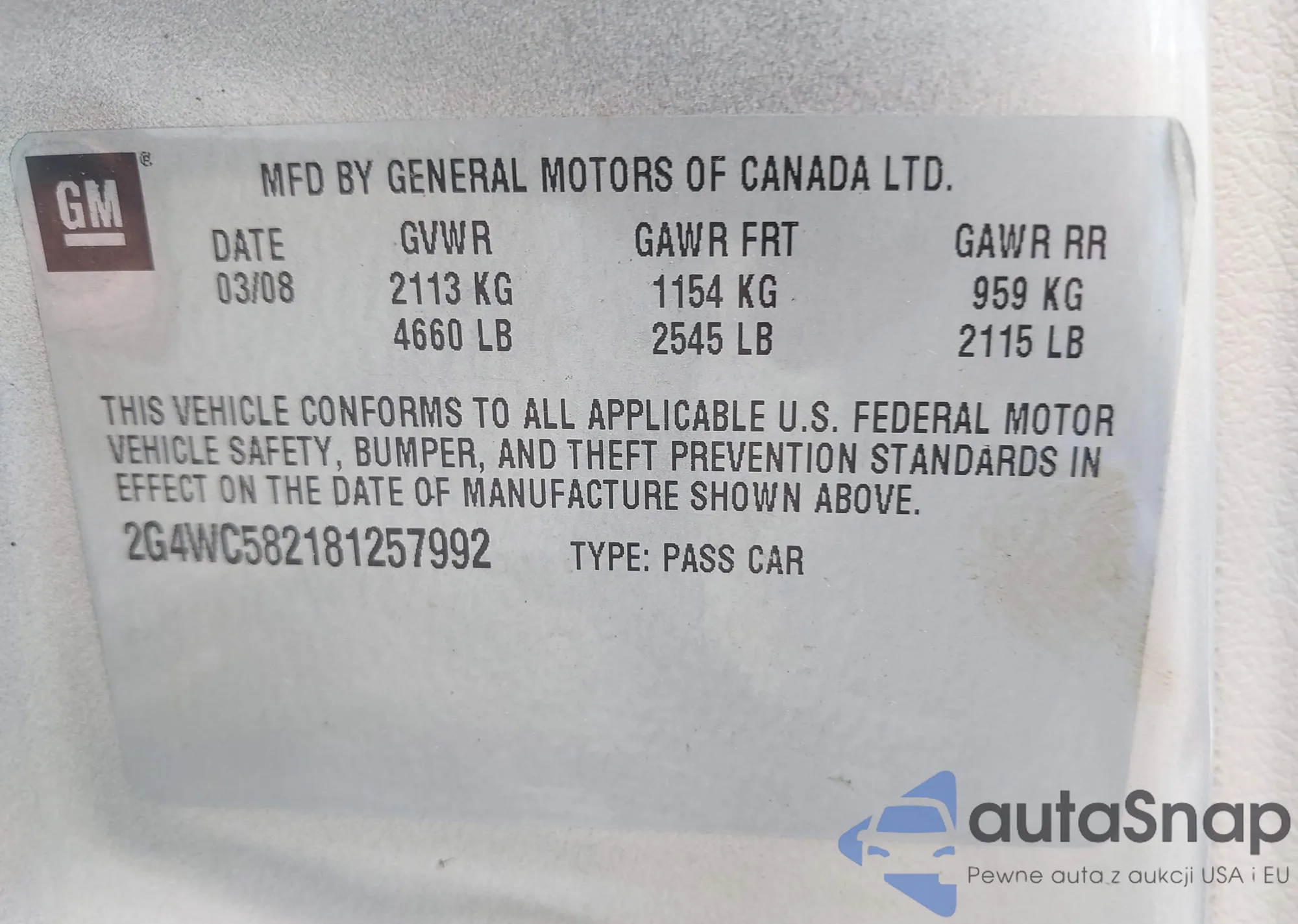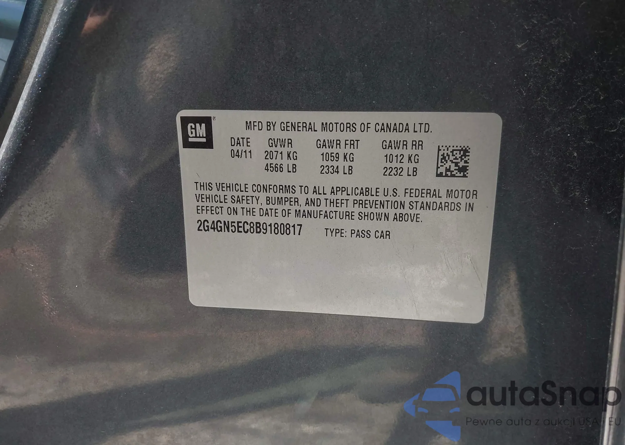 • VIN 2G4GN5EC8B9180817