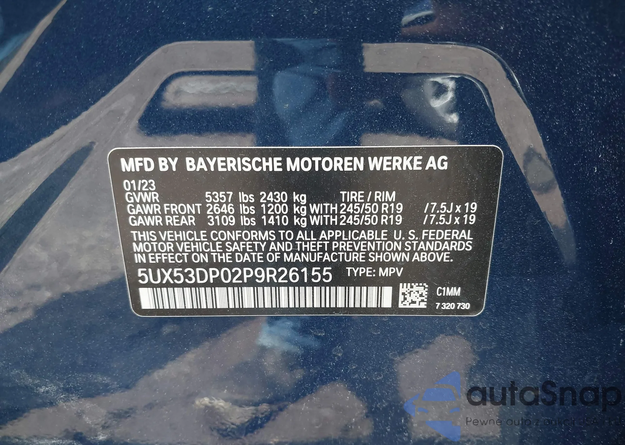 • VIN 5UX53DP02P9R26155