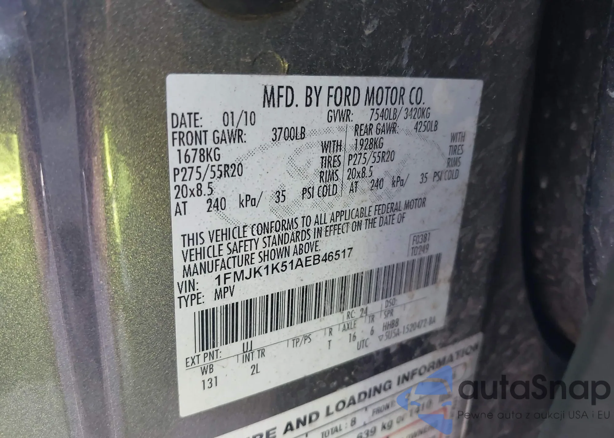LOT: 43330285 VIN: 1FMJK1K51AEB46517