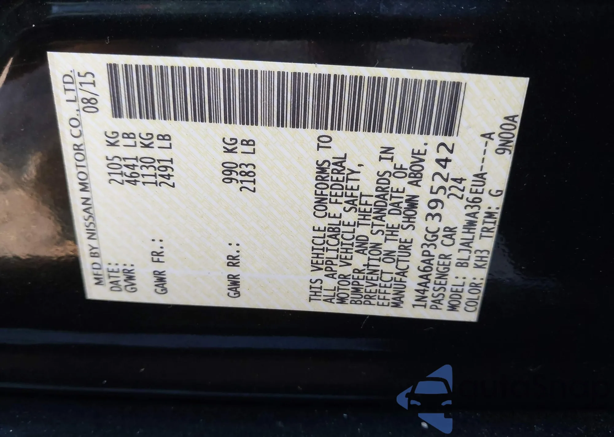 • VIN 1N4AA6AP3GC395242