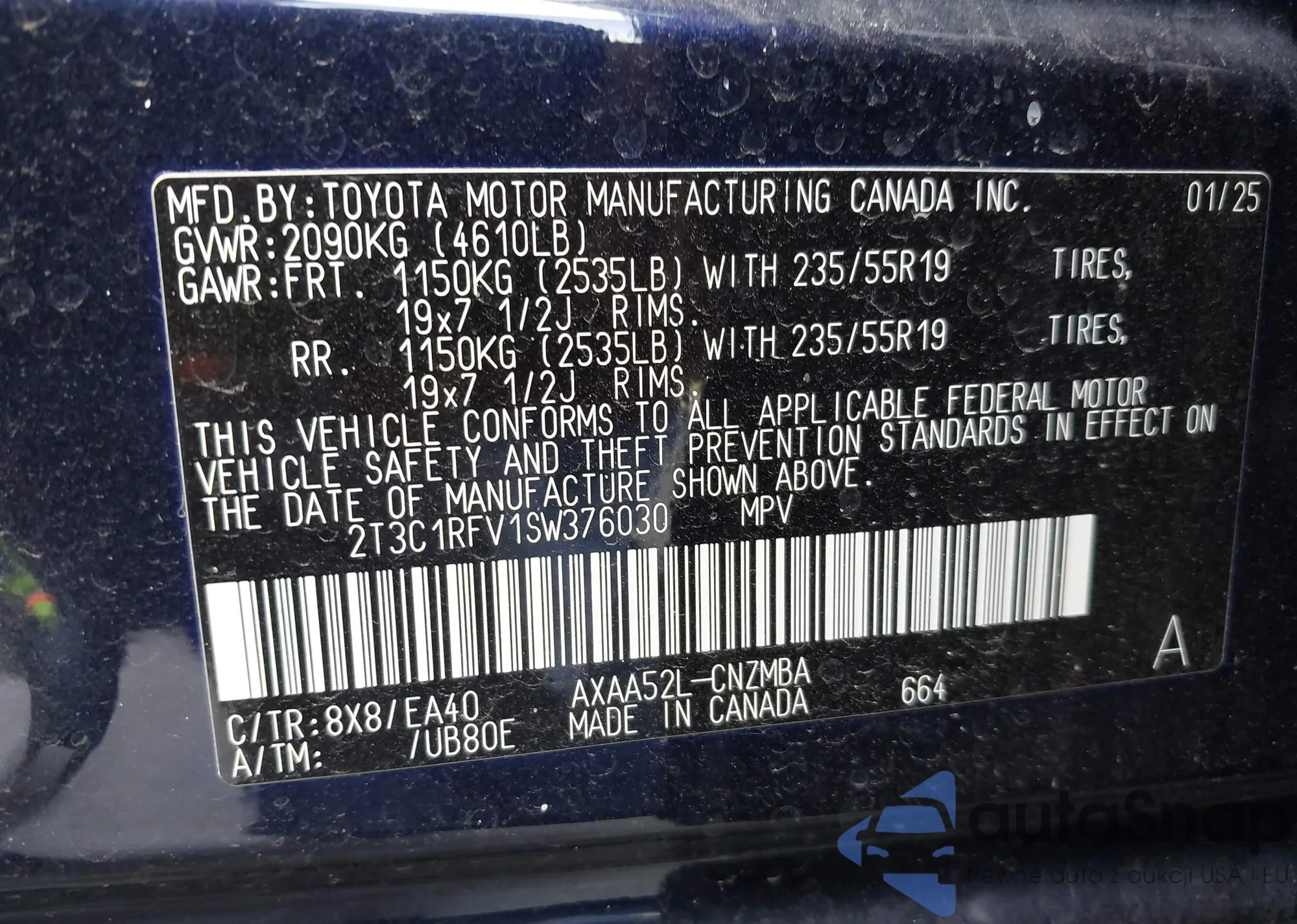 LOT: 43117478 VIN: 2T3C1RFV1SW376030
