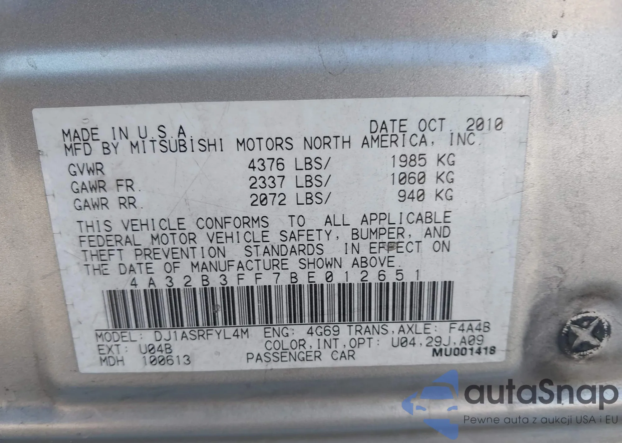 LOT: 43323117 VIN: 4A32B3FF7BE012651