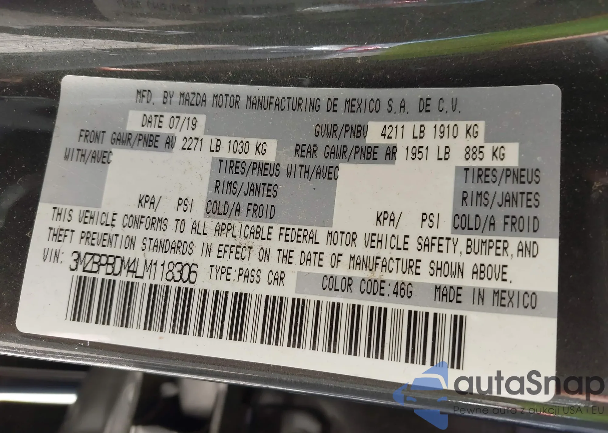 LOT: 43421652 VIN: 3MZBPBDM4LM118306