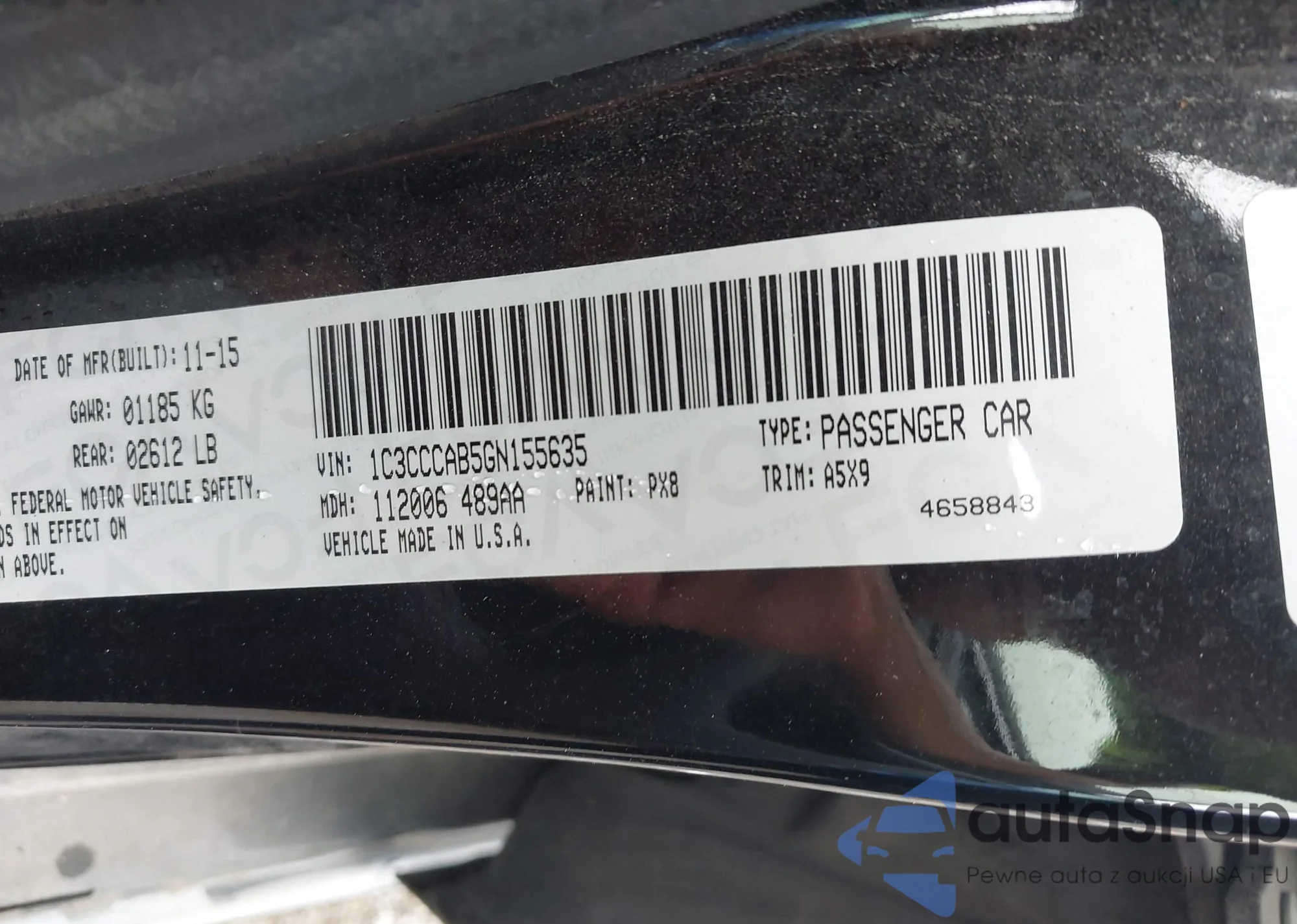 LOT: 43407727 VIN: 19XFA1F85AE030467