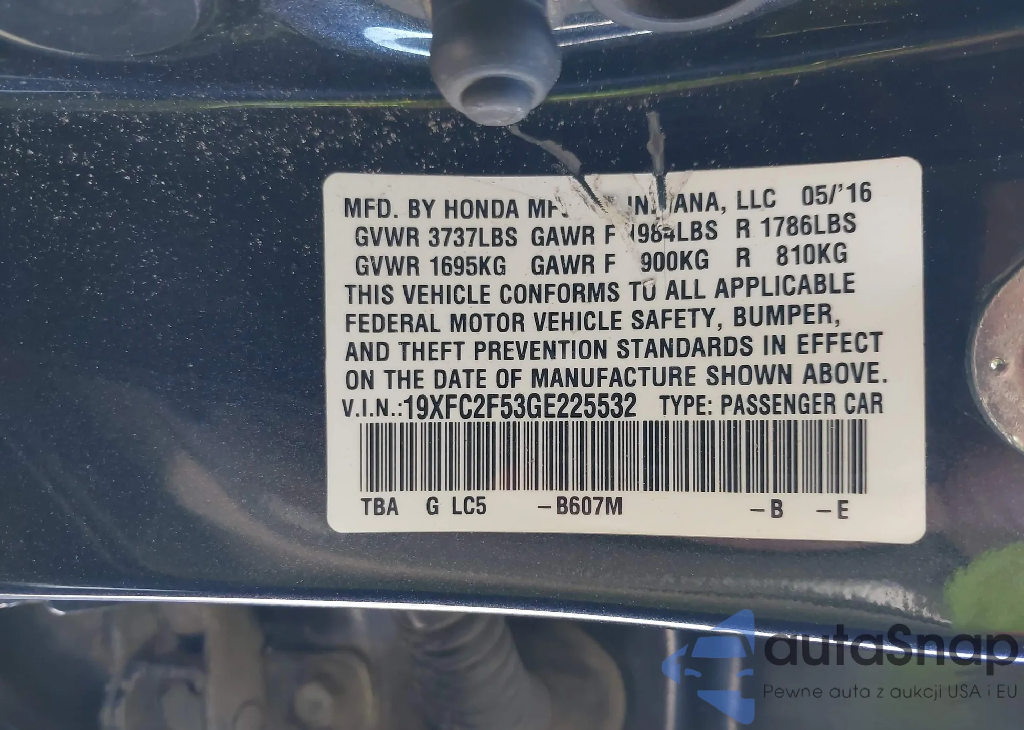 • VIN 19XFC2F53GE225532