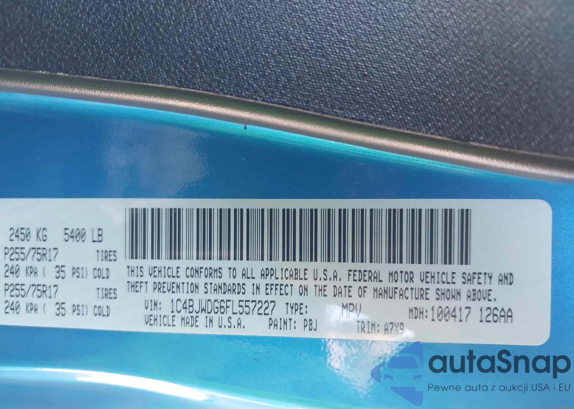 • VIN 1C4BJWDG6FL557227