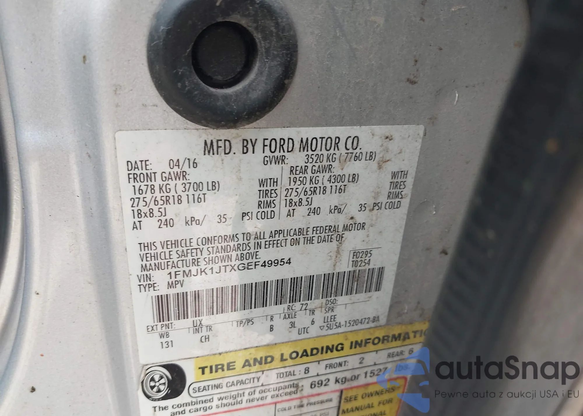 • VIN 1FMJK1JTXGEF49954
