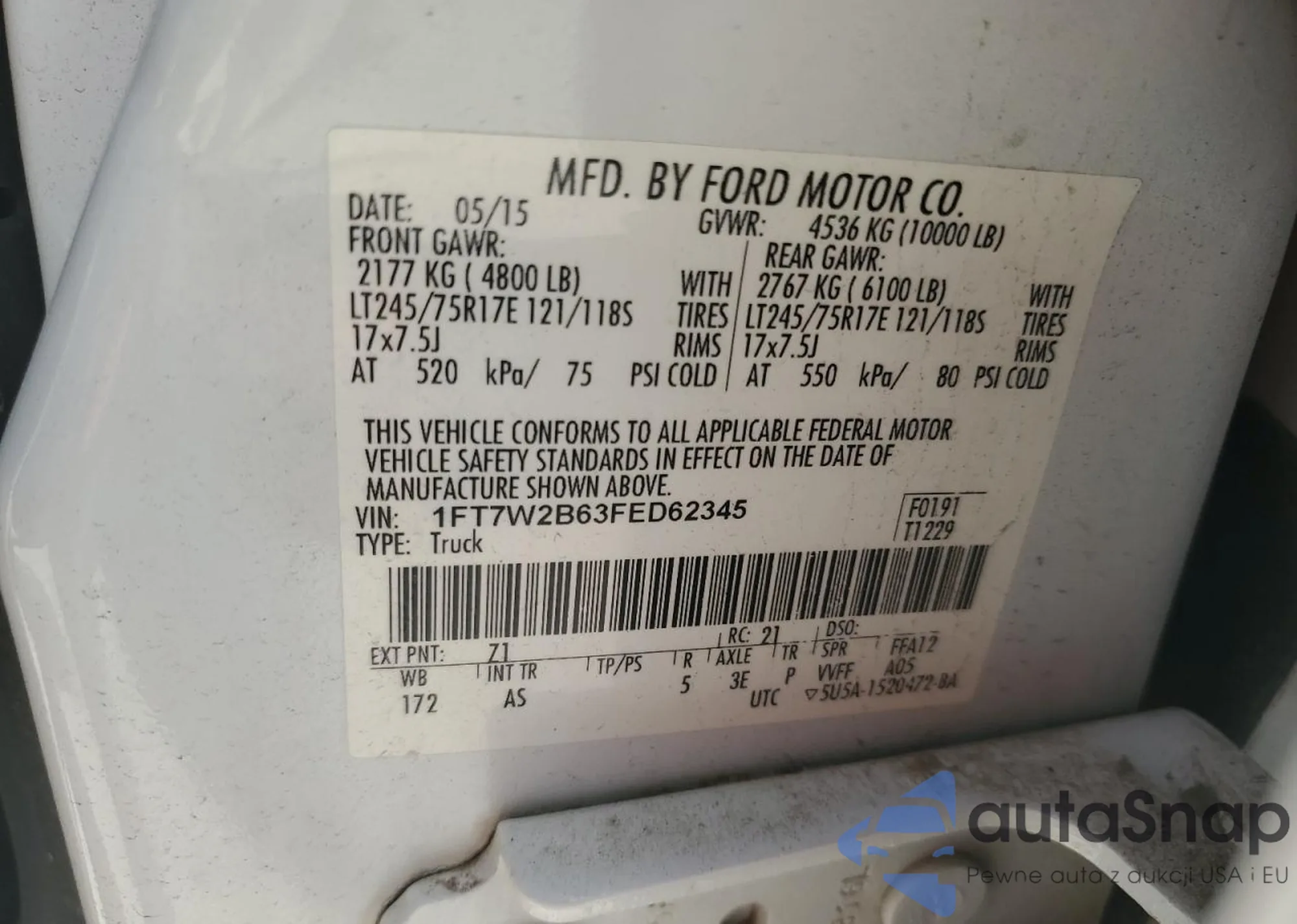 LOT: 70455985 VIN: 1FT7W2B63FED62345