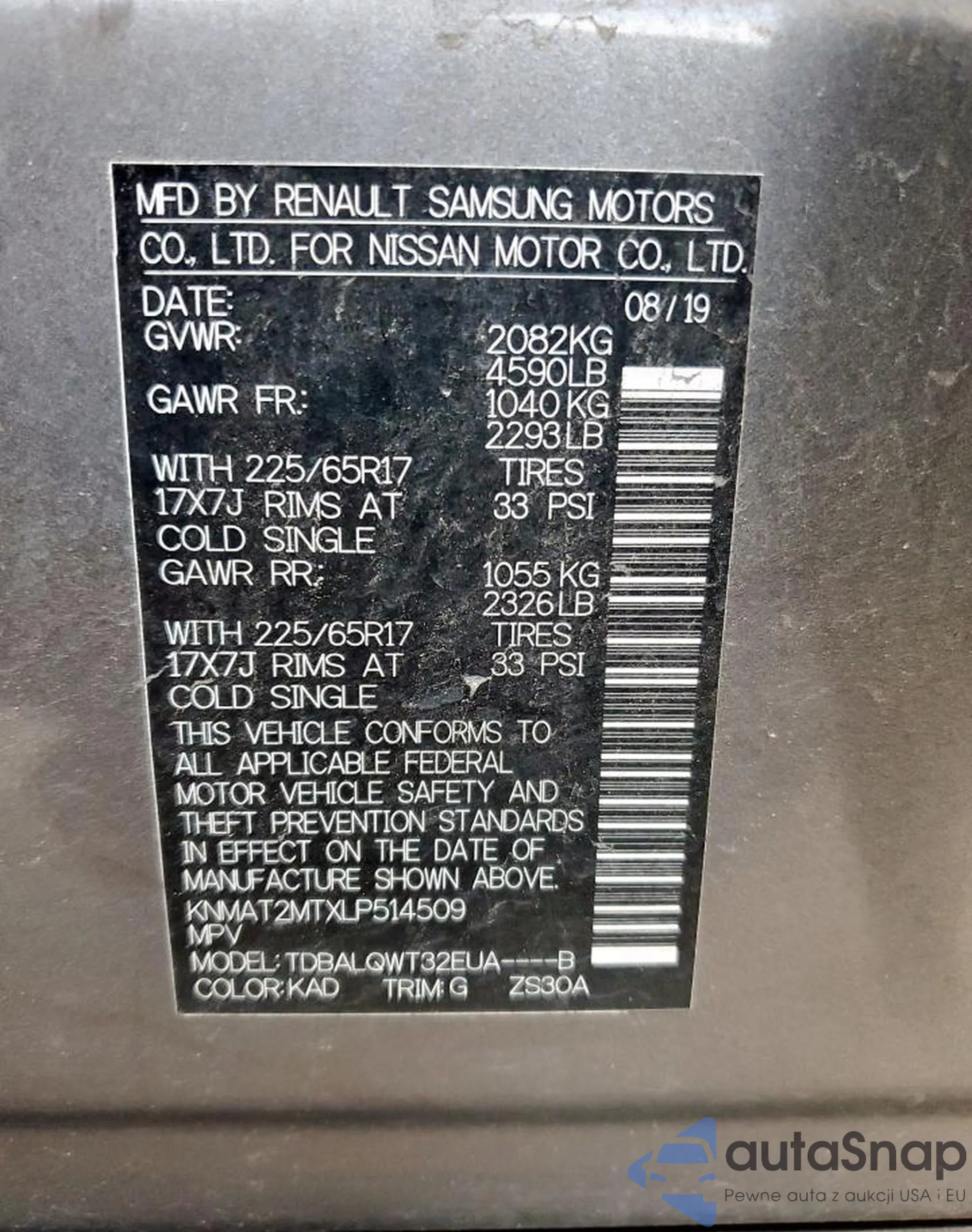 • VIN KNMAT2MTXLP514509
