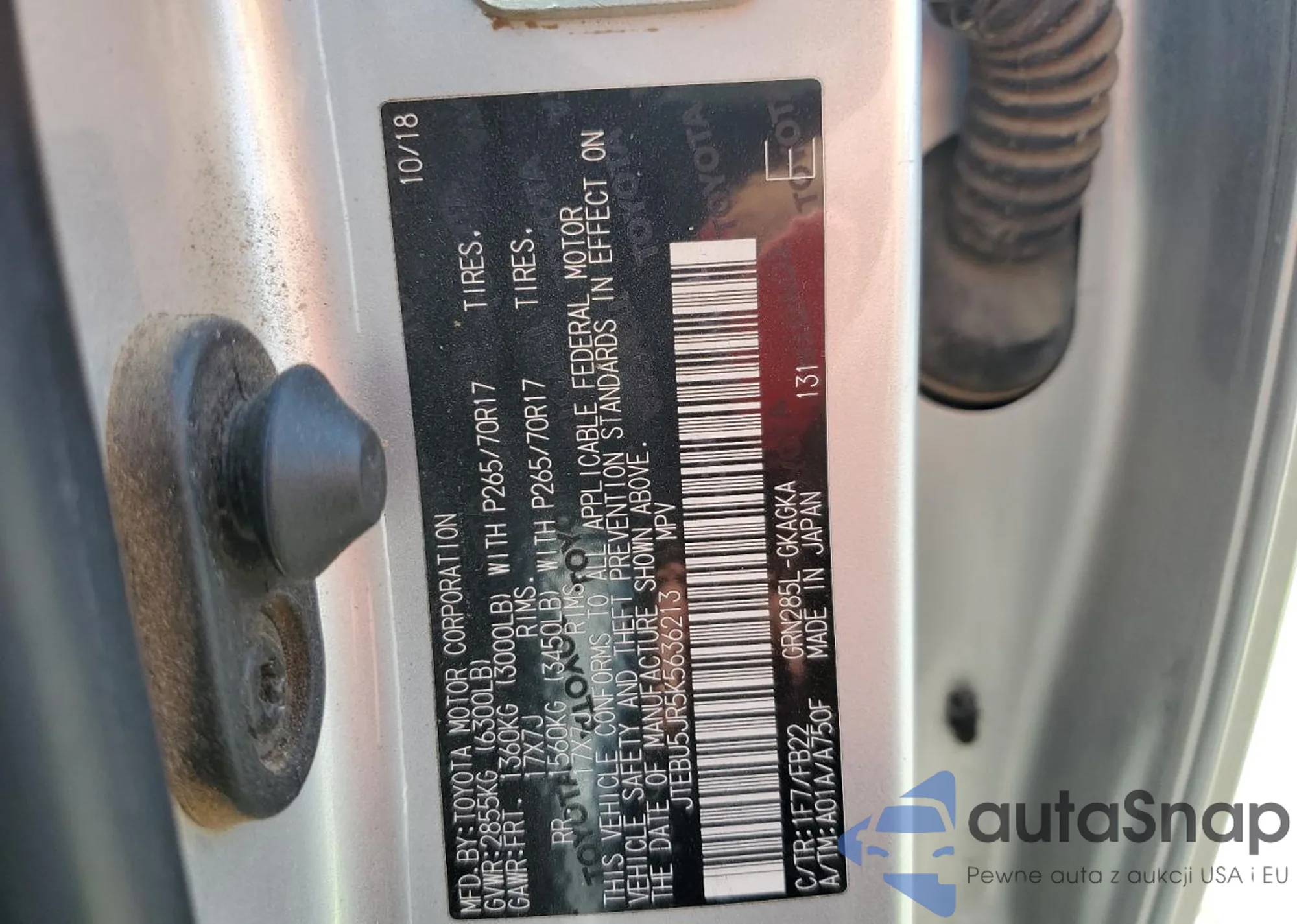 LOT: 80295385 VIN: JTEBU5JR5K5636213
