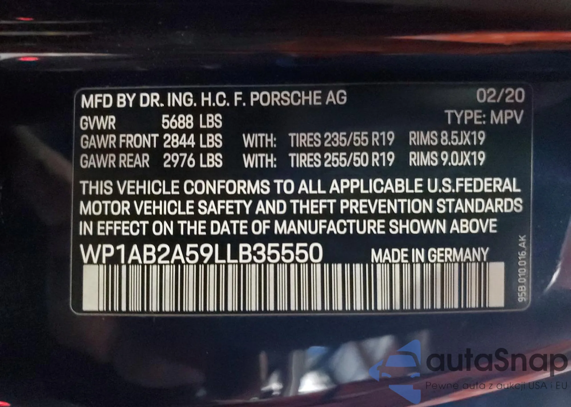 LOT: 85486655 VIN: WP1AB2A59LLB35550