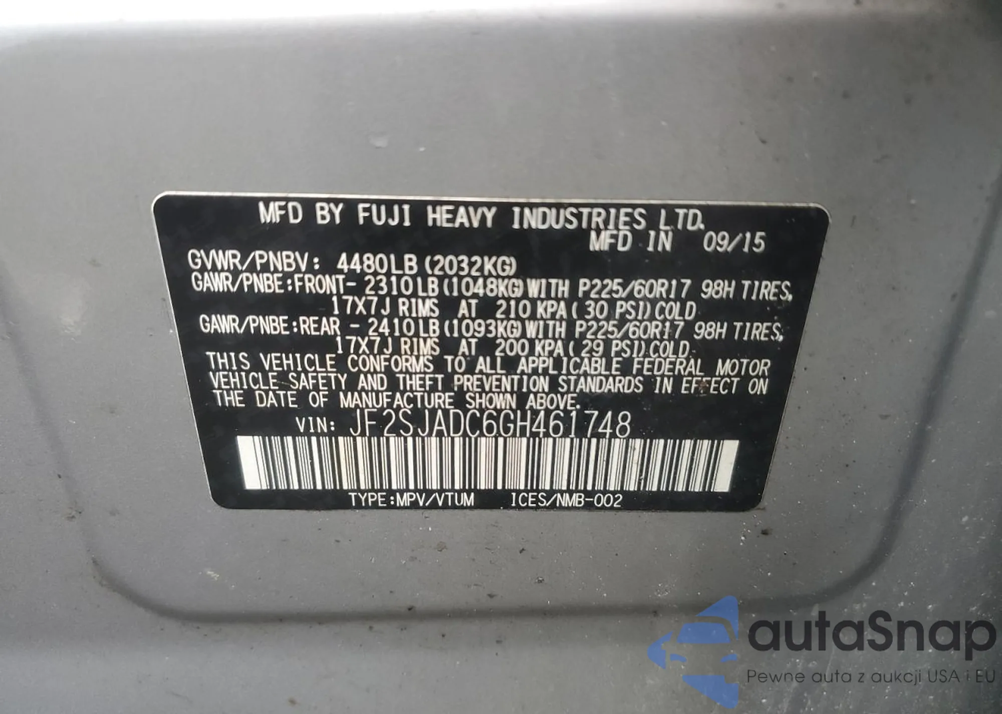 2016 Subaru Forester 2.5I Premium from USA, damaged, VIN JF2SJADC6GH461748