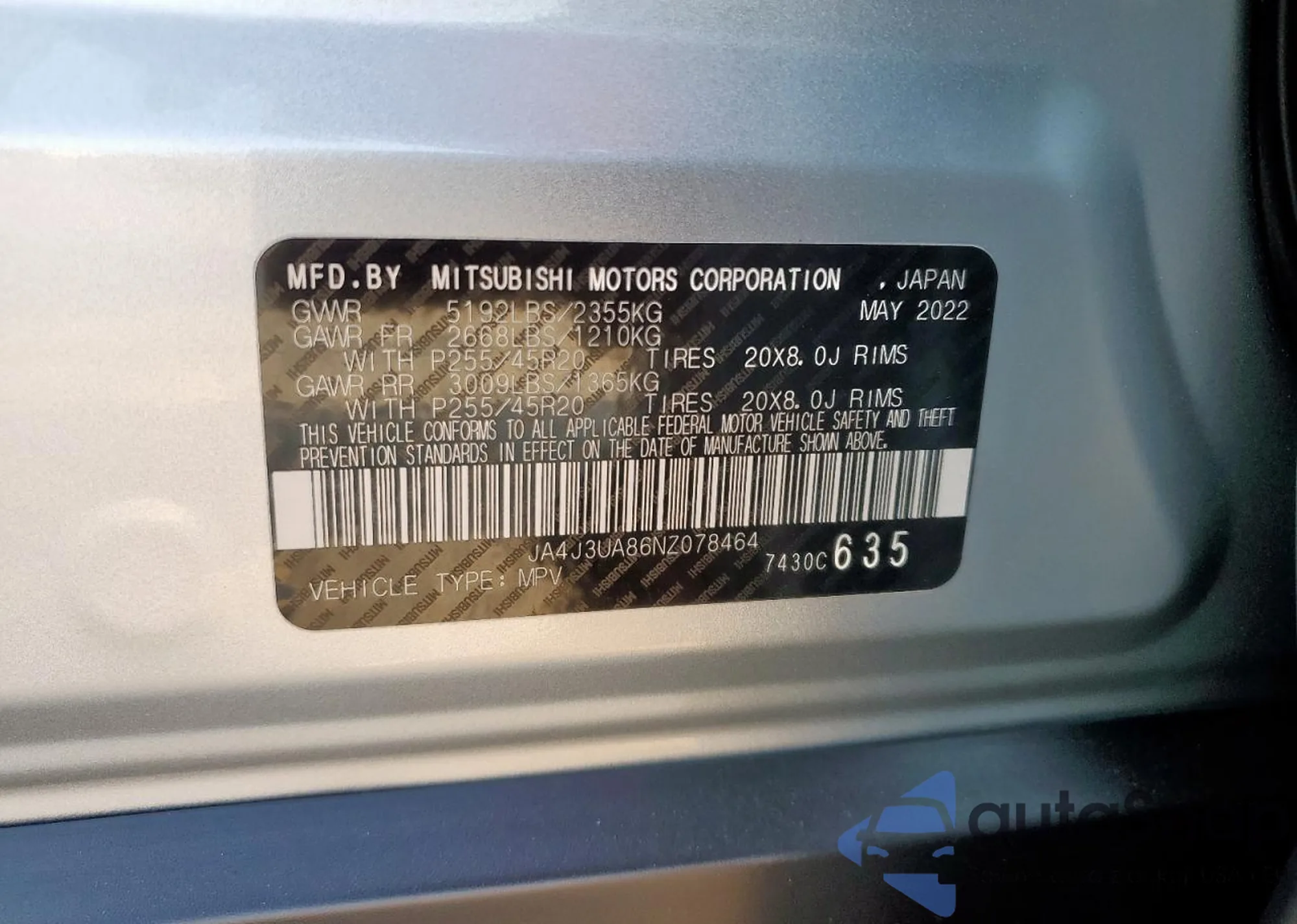 LOT: 82191045 VIN: JA4J3UA86NZ078464