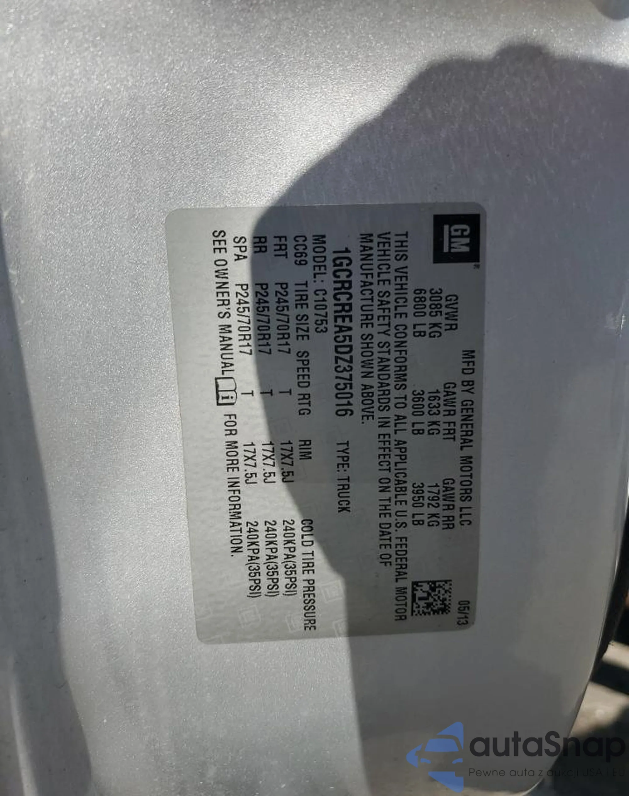 • VIN 1GCRCREA5DZ375016