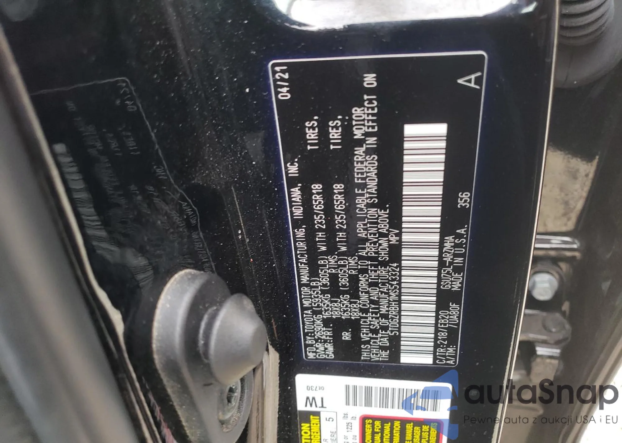 LOT: 80326485 VIN: 5TDGZRBH1MS543324