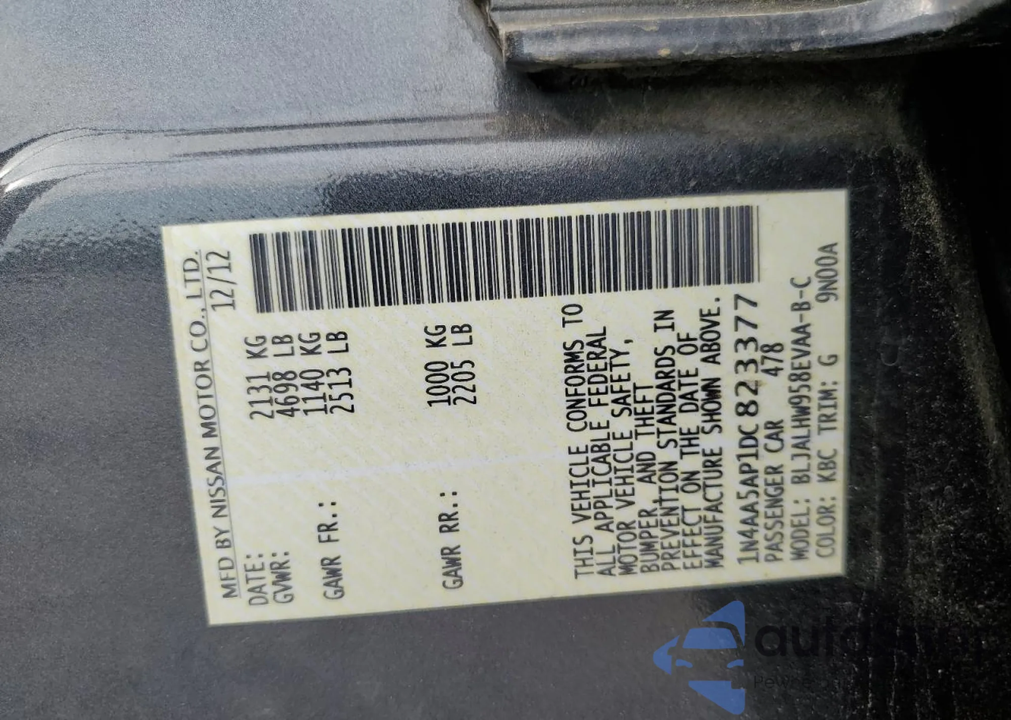 • VIN 1N4AA5AP1DC823377