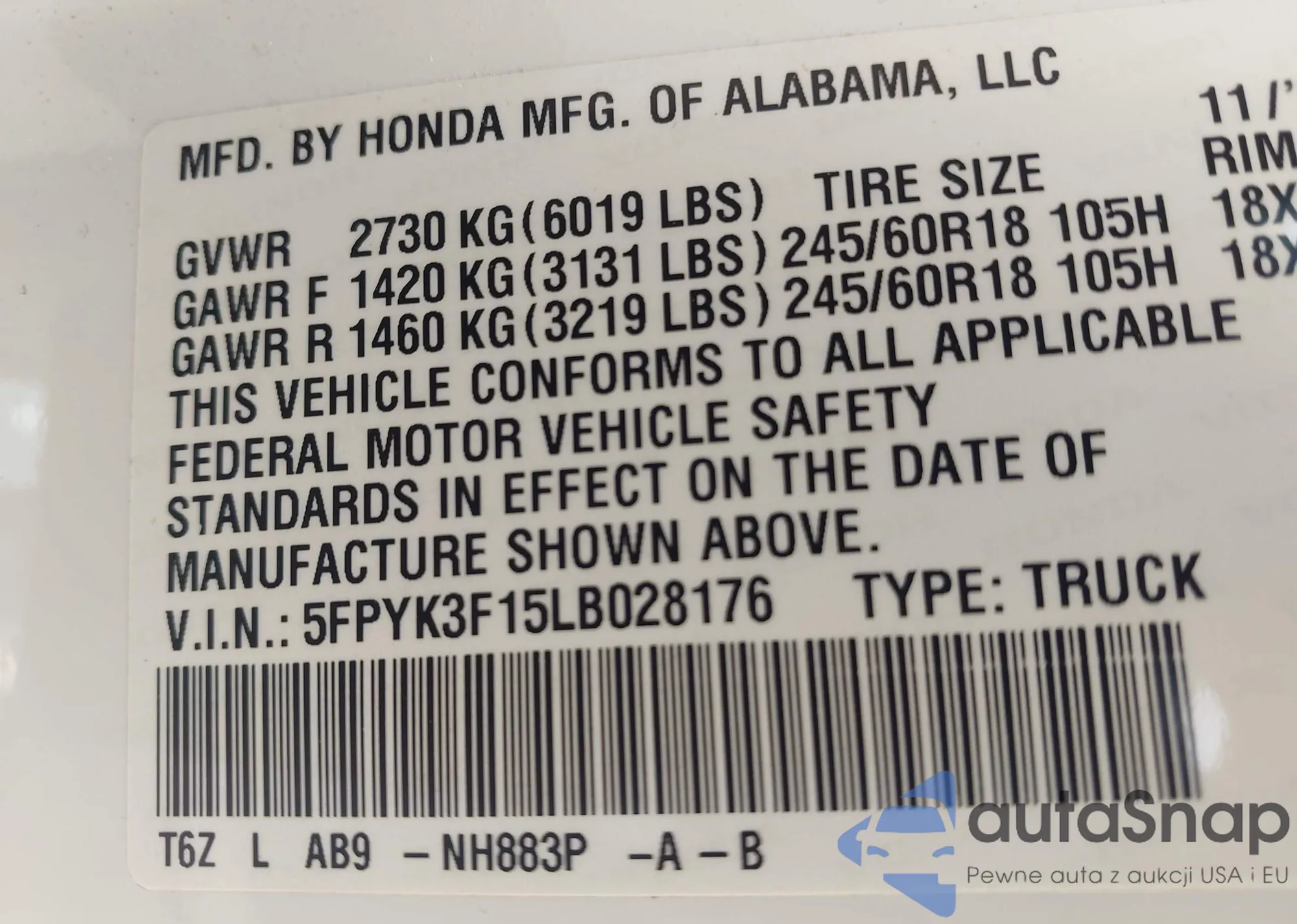 • VIN 2HKRW2H57JH649087