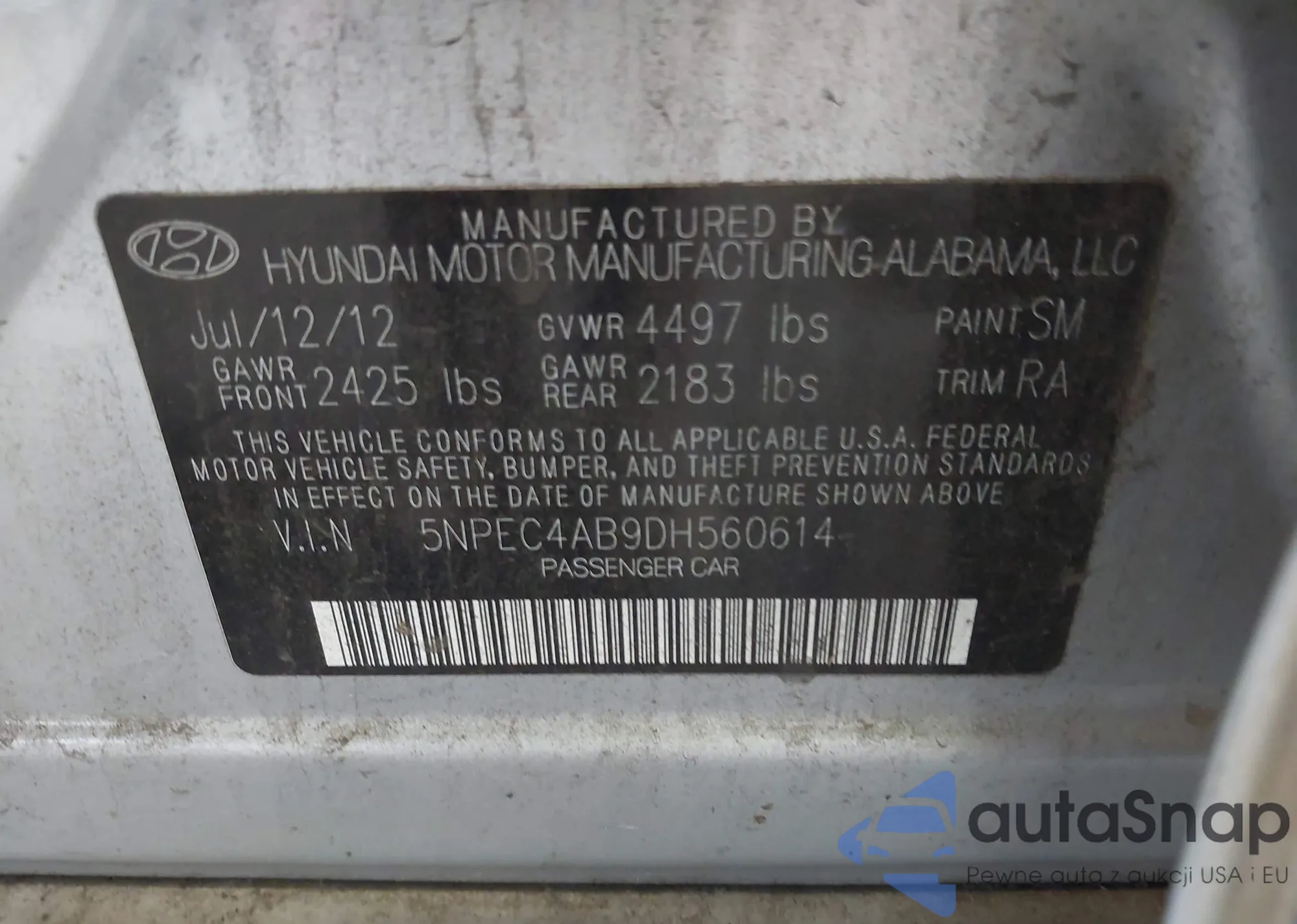• VIN 5NPEC4AB9DH560614