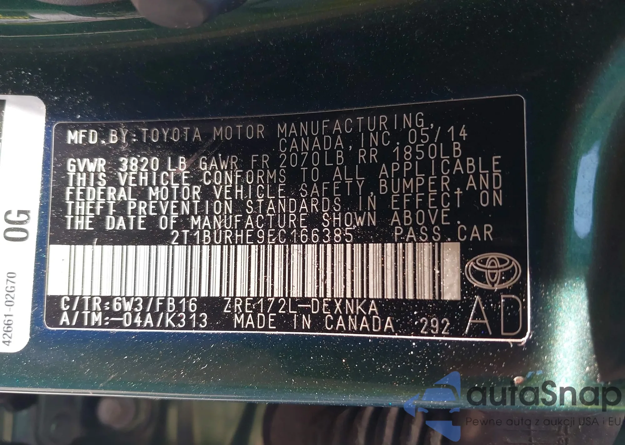 • VIN 1N4BL4CV7LC243702