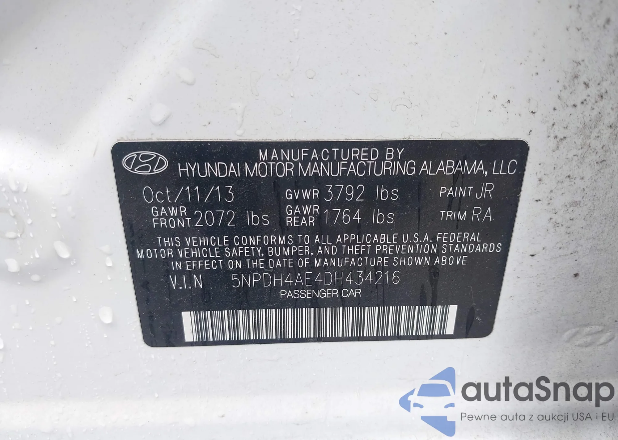 LOT: 42727724 VIN: 5NPDH4AE4DH434216
