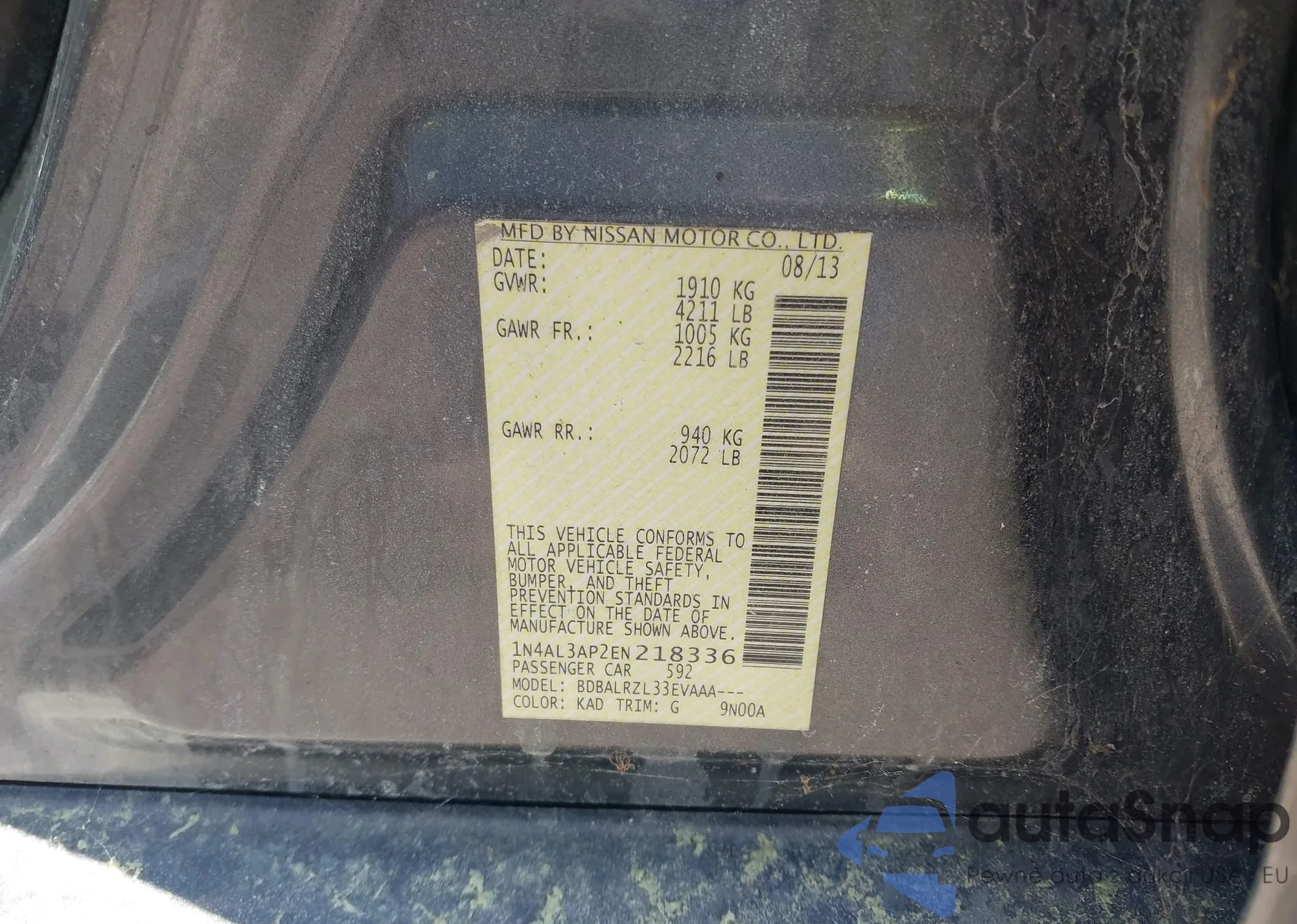 LOT: 43341701 VIN: 3N1AB6AP4AL629085