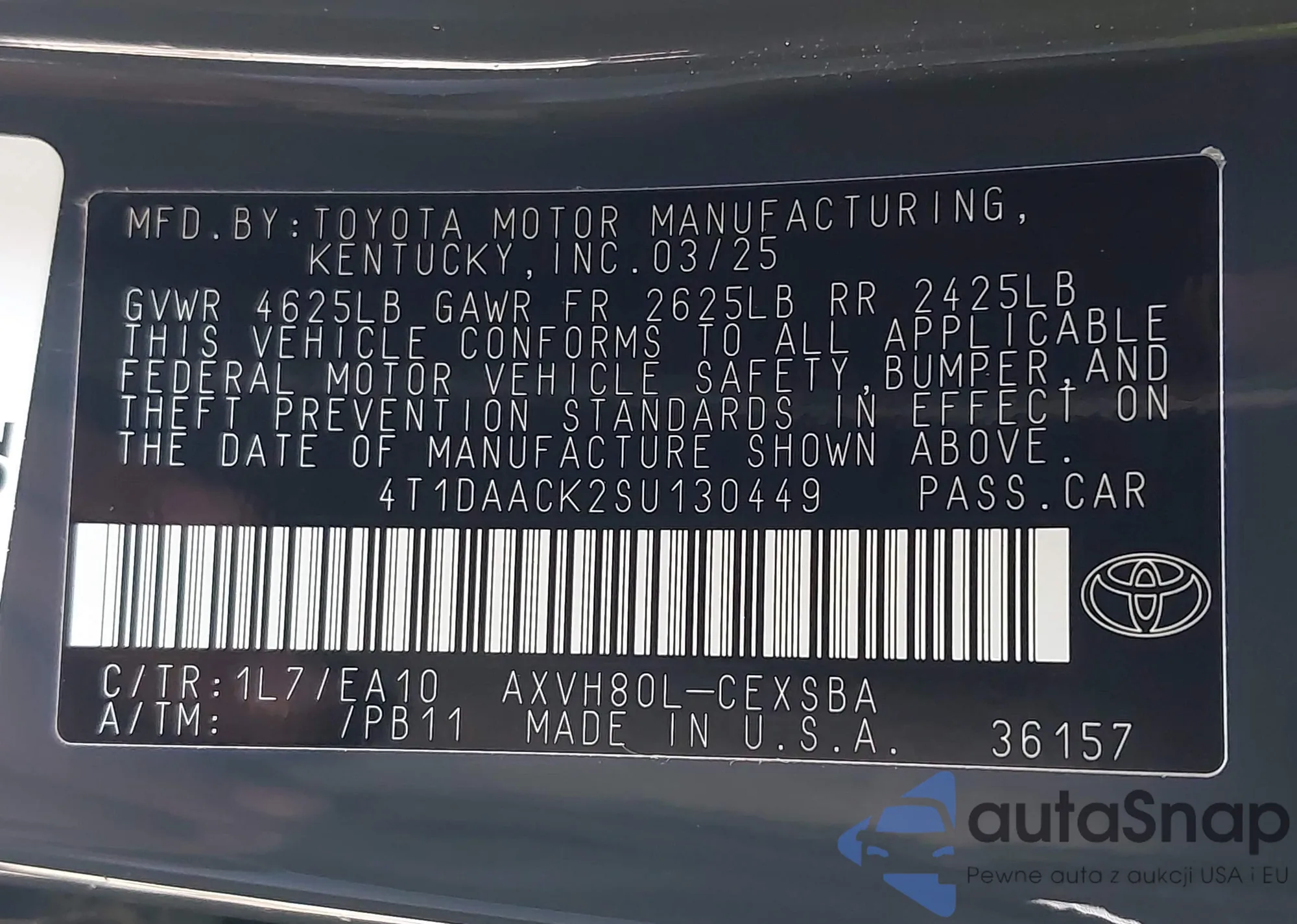 • VIN 4T1DAACK2SU130449