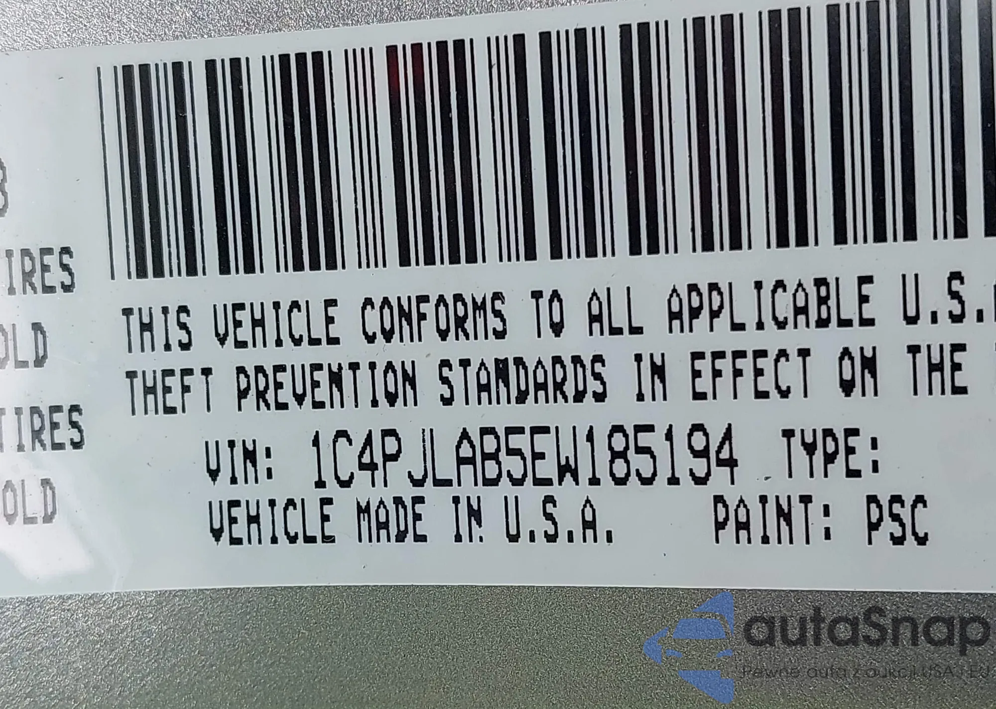 • VIN 1C4PJLAB5EW185194