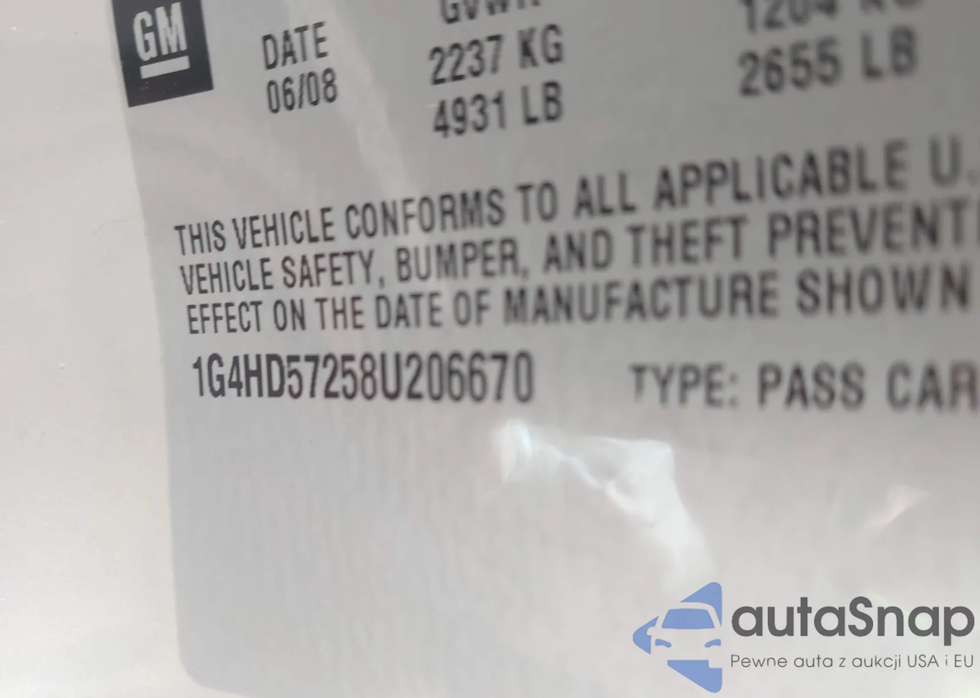 • VIN 1G4HD57258U206670