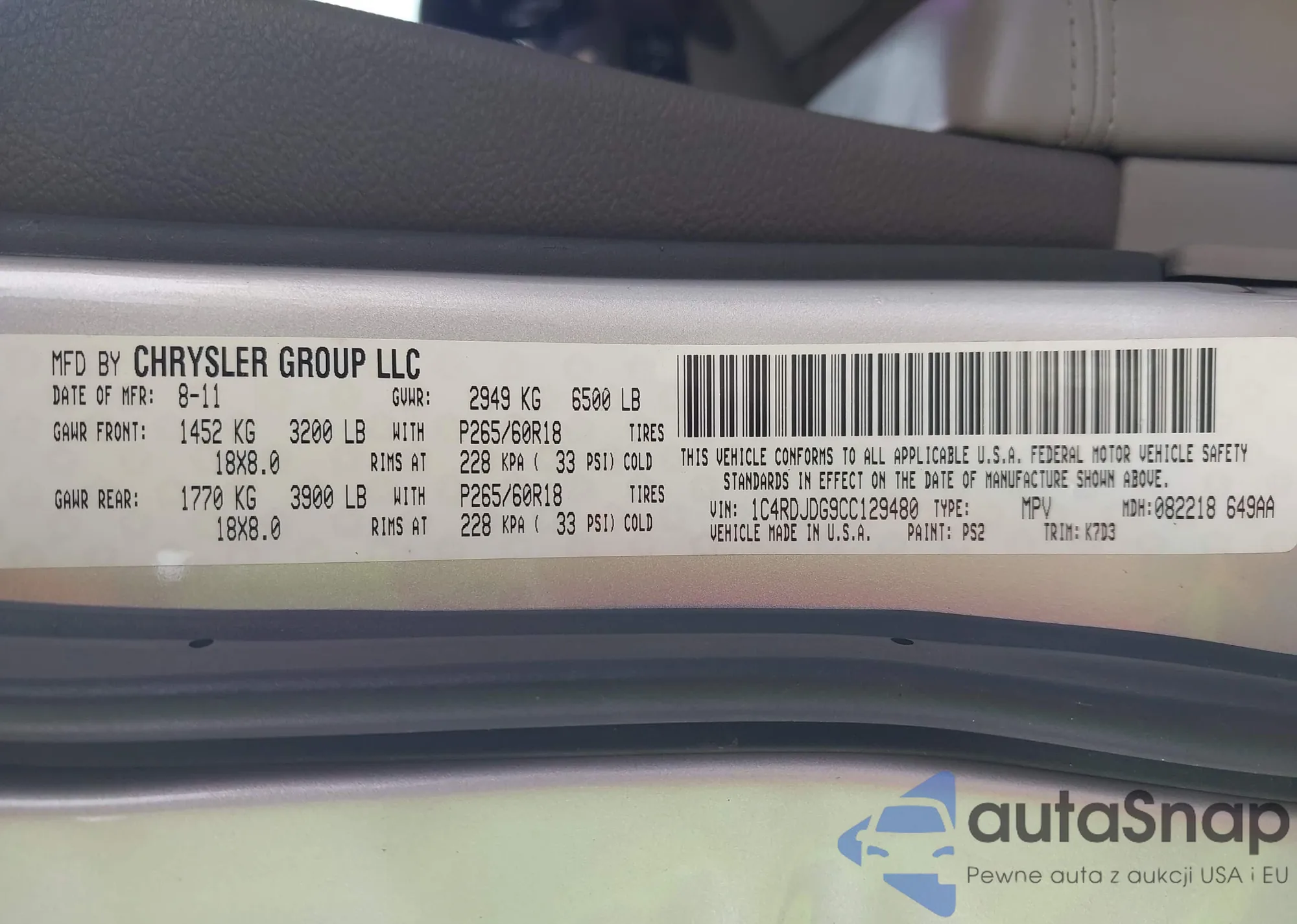 • VIN 1C4RDJDG9CC129480