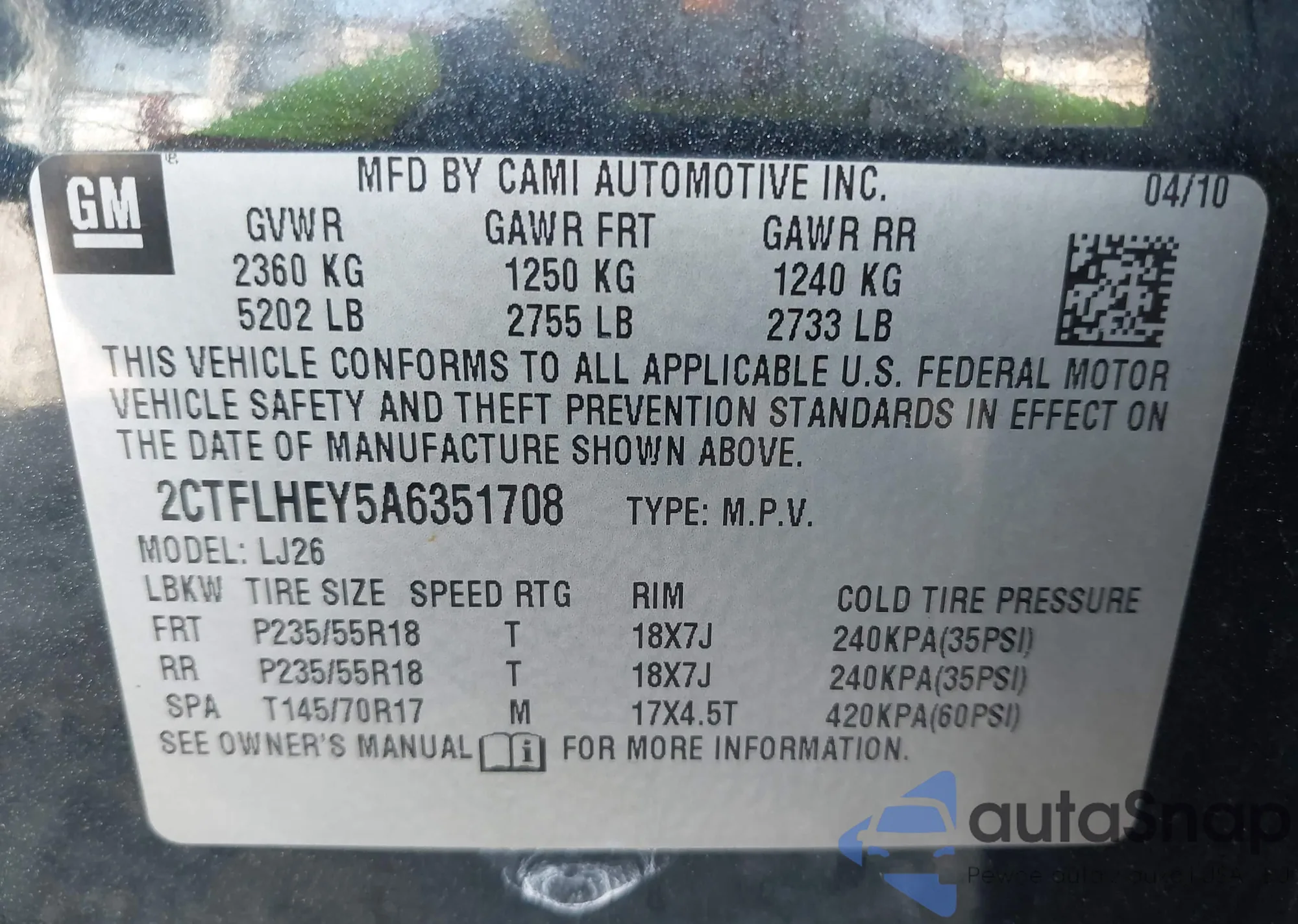 • VIN 2CTFLHEY5A6351708