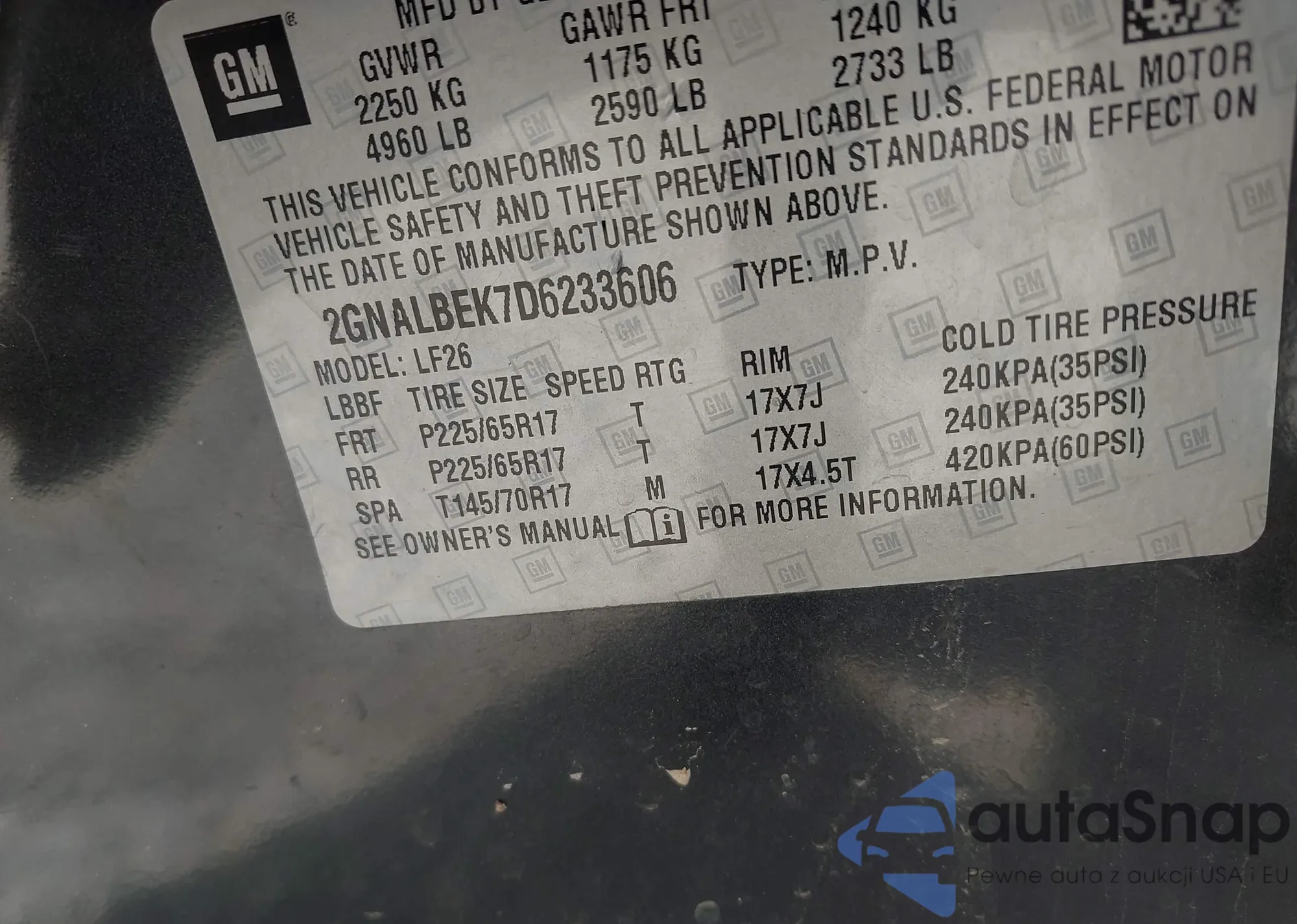 • VIN 2GNALBEK7D6233606